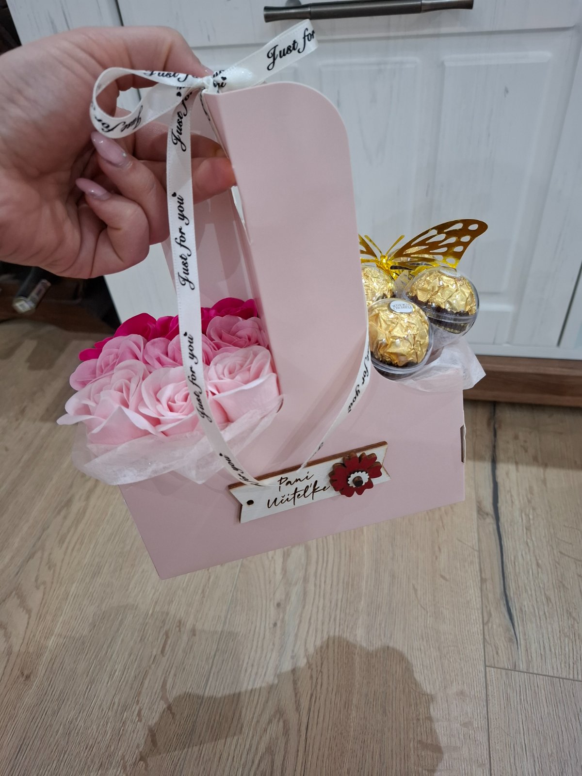 Vhodné ako darček 🌹 Košík využiteľný na čokoľvek, kvetinky ľahko vytiahnuť :)