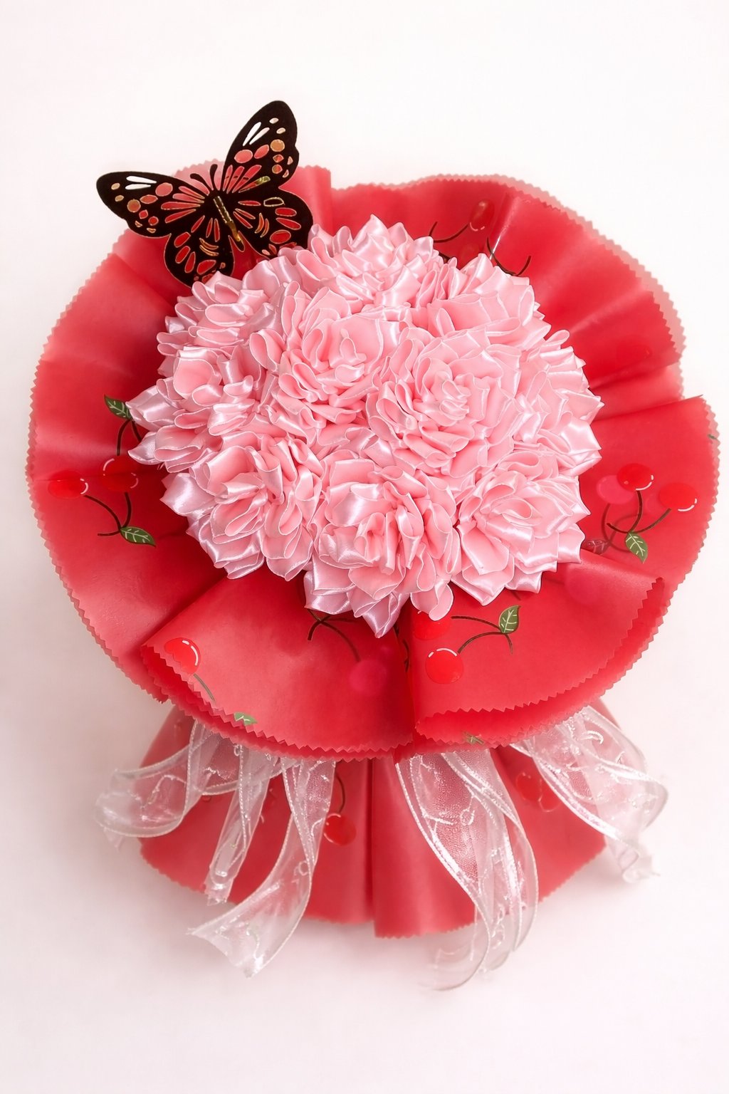 Vyrábam saténové kytice ruží cena závisí od počtu ružičiek 😉 cena jednej veľkej ružičky aj z doplnkami je 2€