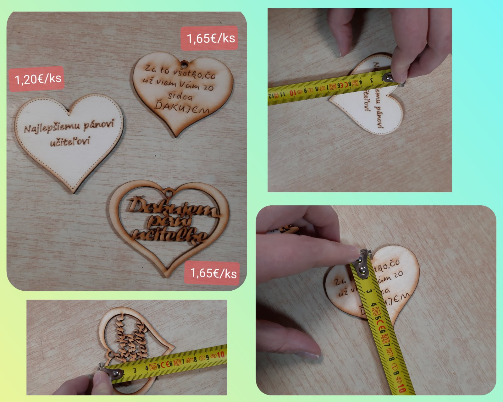 Drevené srdiečka a anjeliky od 1,20€/ks - do 3,80€/ks- na fotkách sú odfotené motívy, veľkosť a cena. Menšie srdiečka sú bez magnetu, dajú sa zavesiť, väčšie srdiečka a anjeliky sú s magnetom a dajú sa aj zavesiť.