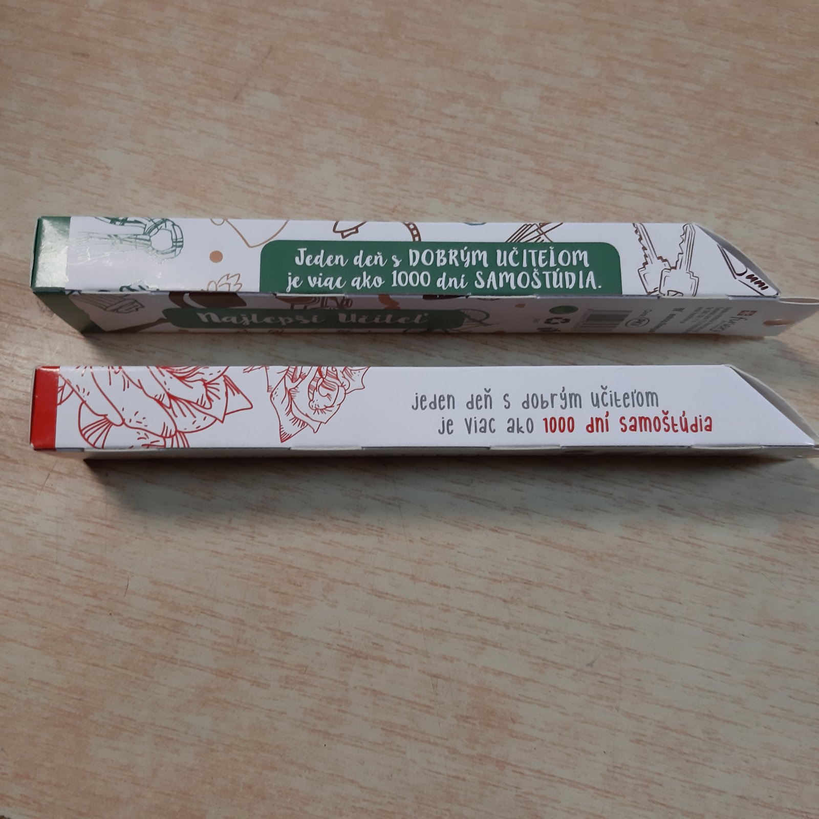 Pero učiteľ- farba: čierna, pero učiteľka -farba červená