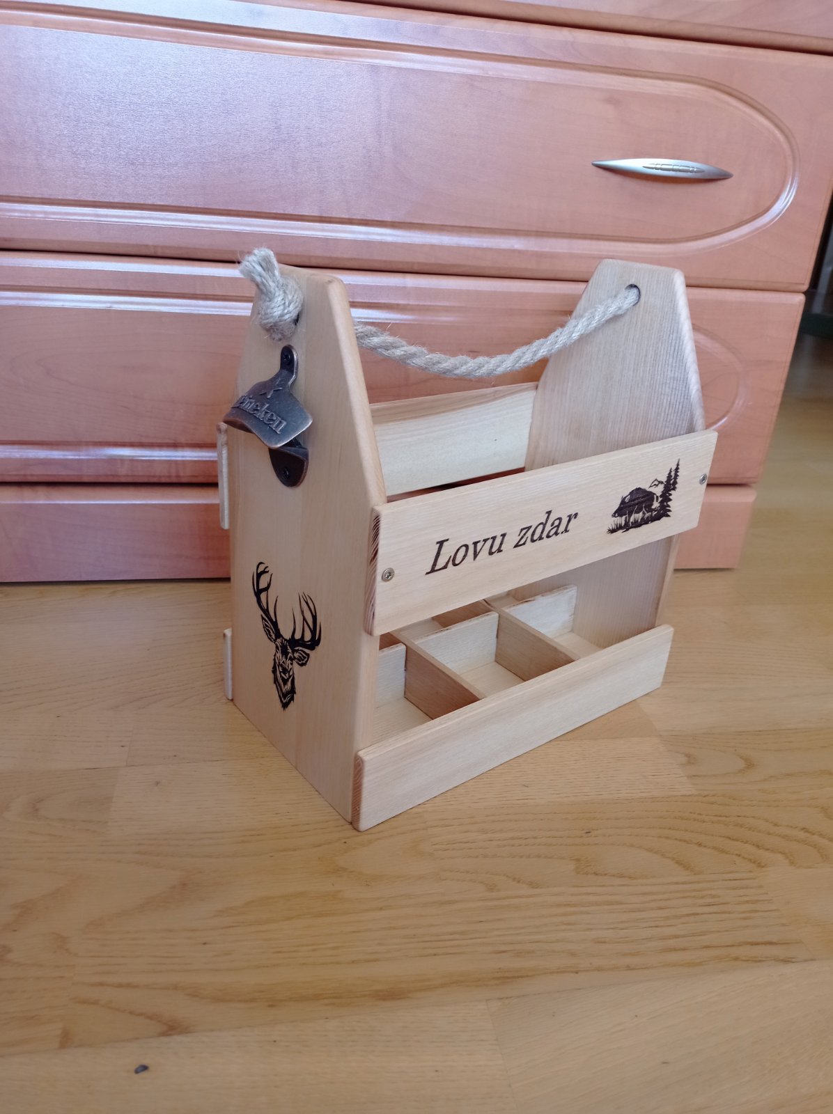 Drevený nosič na pivo