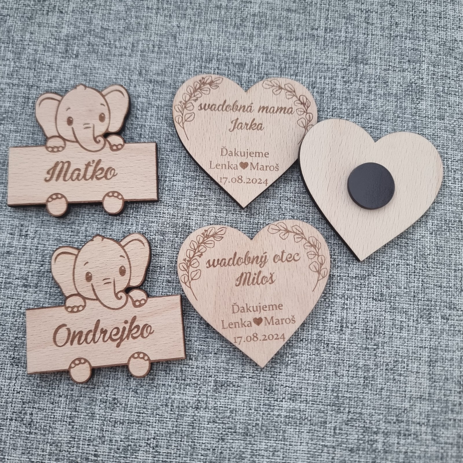 Rôzne magnetky ako malé poďakovanie pre Vaších hostí. Text, veľkosť, tvar podľa želania. Cena záleží od druhu, veľkosti, ale aj počtu kusov. Vyrábame aj kľúčenky a rôzne ide gravírované dekorácie, darčeky... pre viac info poprosím správu