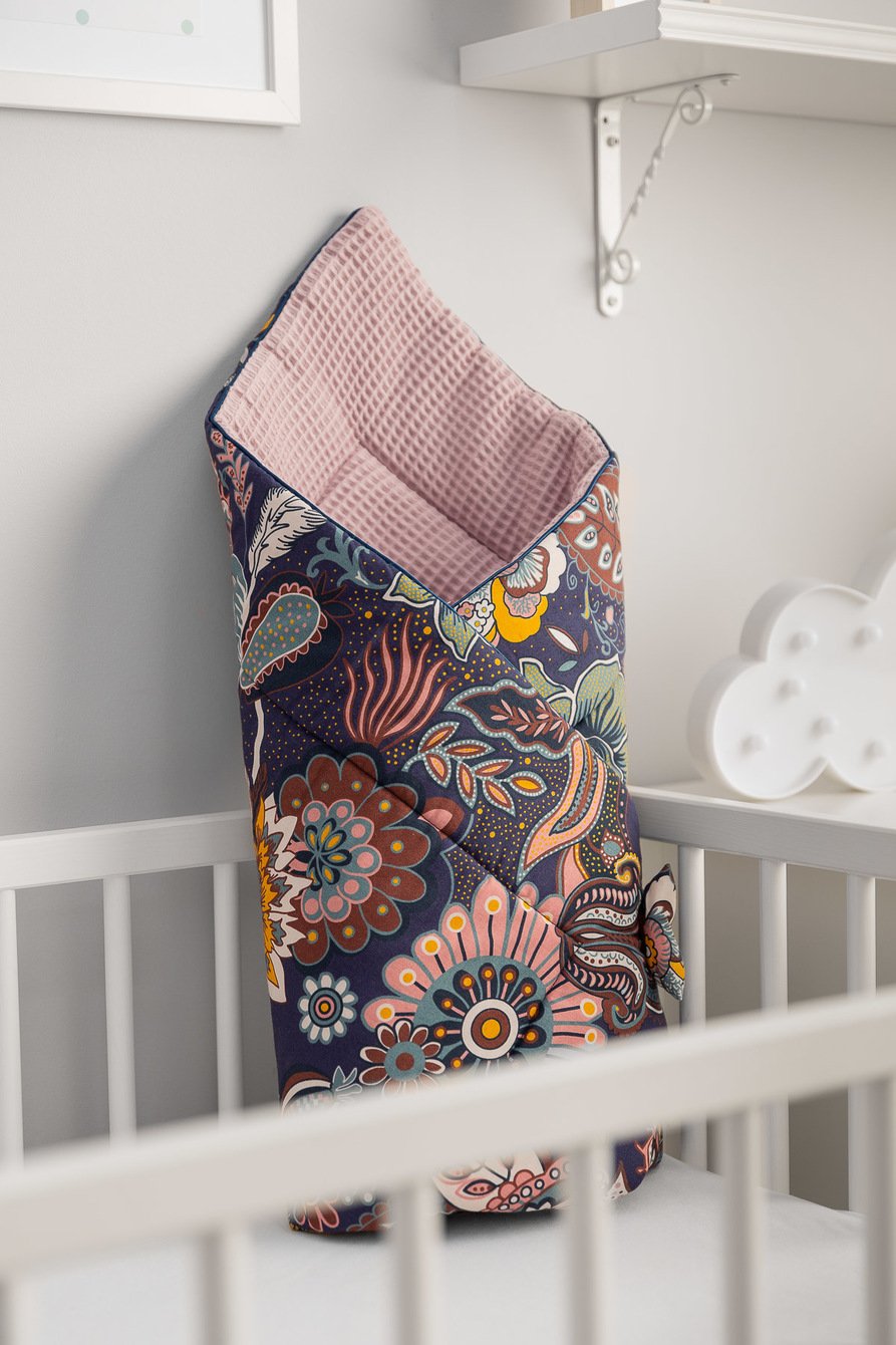 Pre novorodencov a dojčatá bol vytvorený obojstranná detská zavinovačka. Zapínanie na suchý zips umožňuje pohodlné držanie dieťaťa počas kŕmenia a spánku. Po rozvinutí sa môže použiť ako prikrývka na detskú postieľku alebo kočík. Môže sa použiť aj ako hracia podložka. Bol vyrobený zo 100% bavlny. Na jednej strane má potlač, na druhej strane štruktúru oblátky. Výplň je našuchorená silikónová netkaná textília.