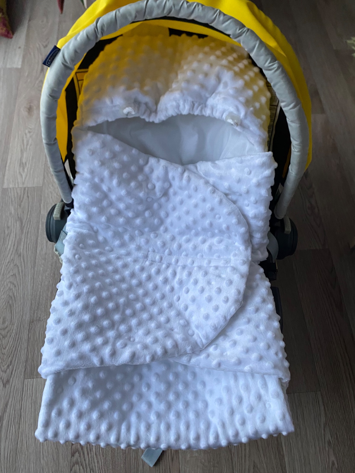 Zavinovacka do autosedacky,nova,minky,tenky vatelin,vnutro bavlnena latka,rozmery cca 96x96m,dlzka ma dve polohy-rastie s dietatom.