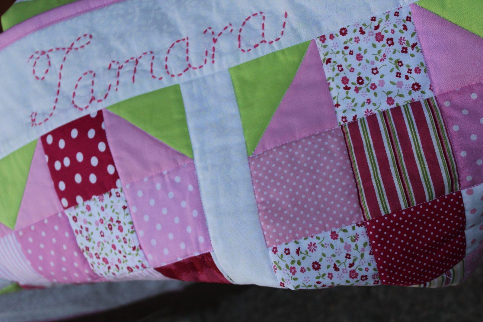 Detská deka s výšivkou mena na želanie šitá patchwork technikou , výplň termolín, podšívka jemná minky. 95x120cm