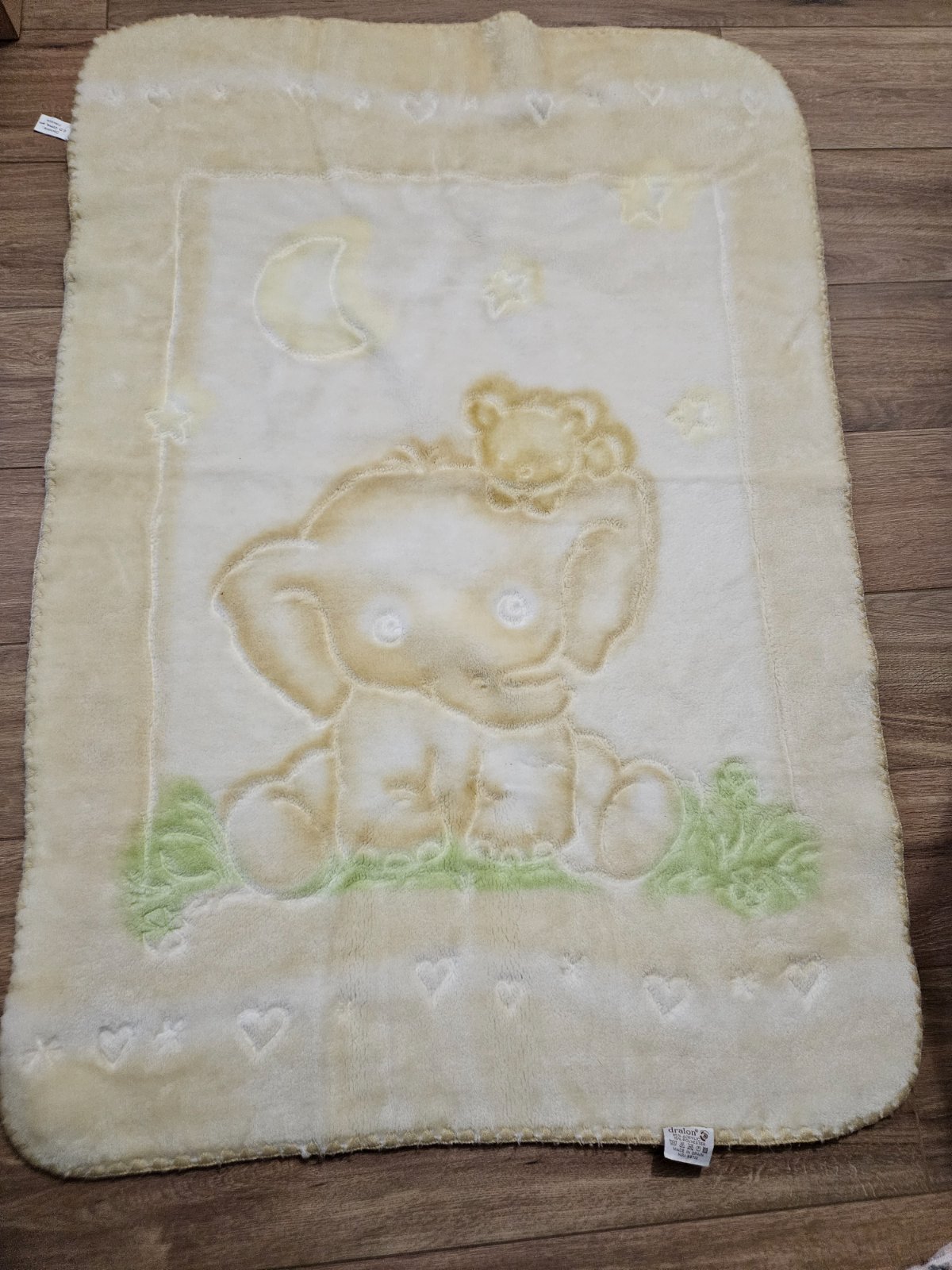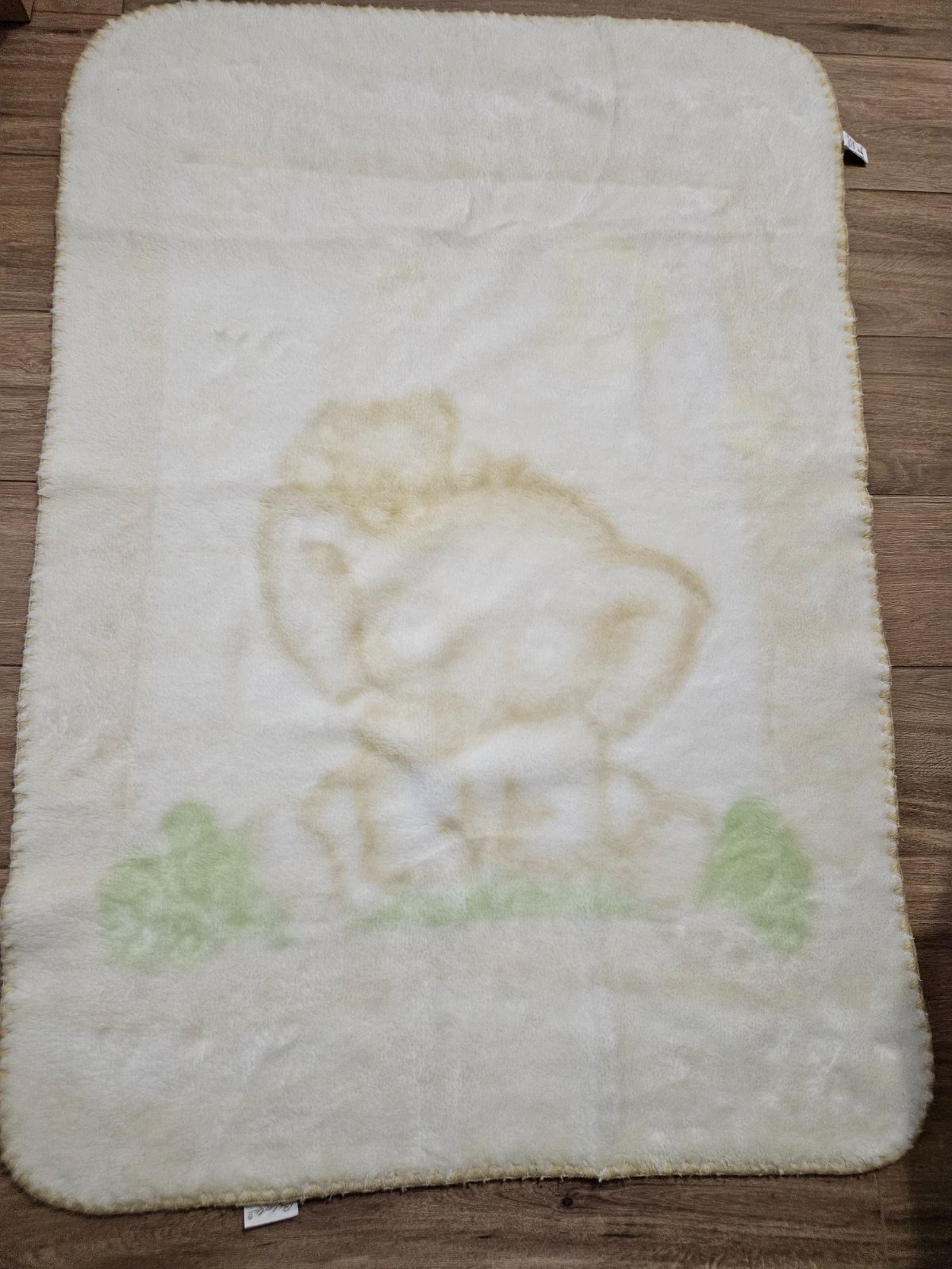Flísová deka podšitá bavlnou. Aplikácia macíka. Bez poškodení.