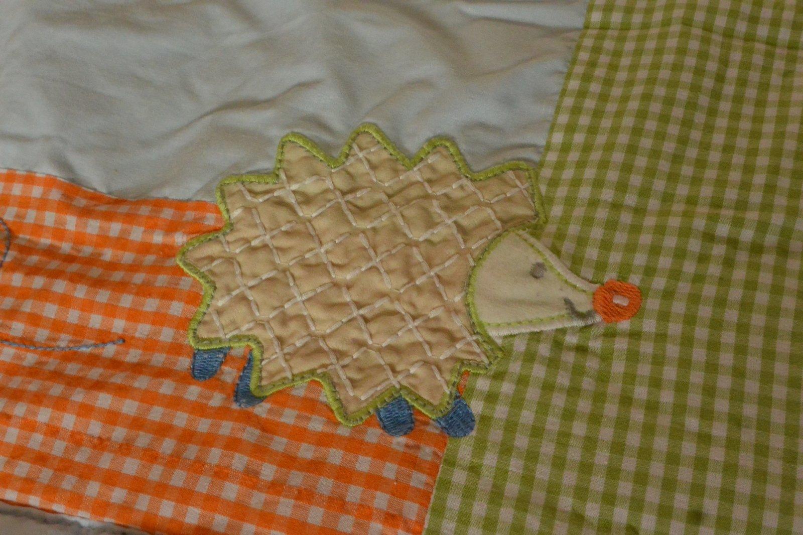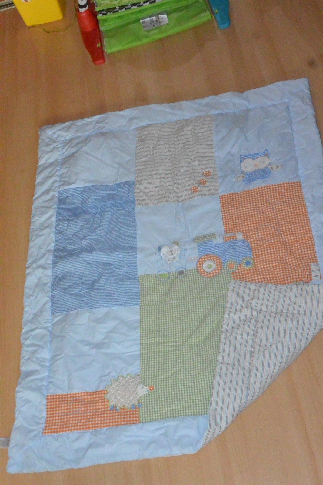 Deka obojstranna, rozmer 100 x 120 cm, s motivom zvieratka, k tomu obojstranne hniezdo, rozmer 35 x 155 cm. Pranie na 40*C. Velmi pekne.