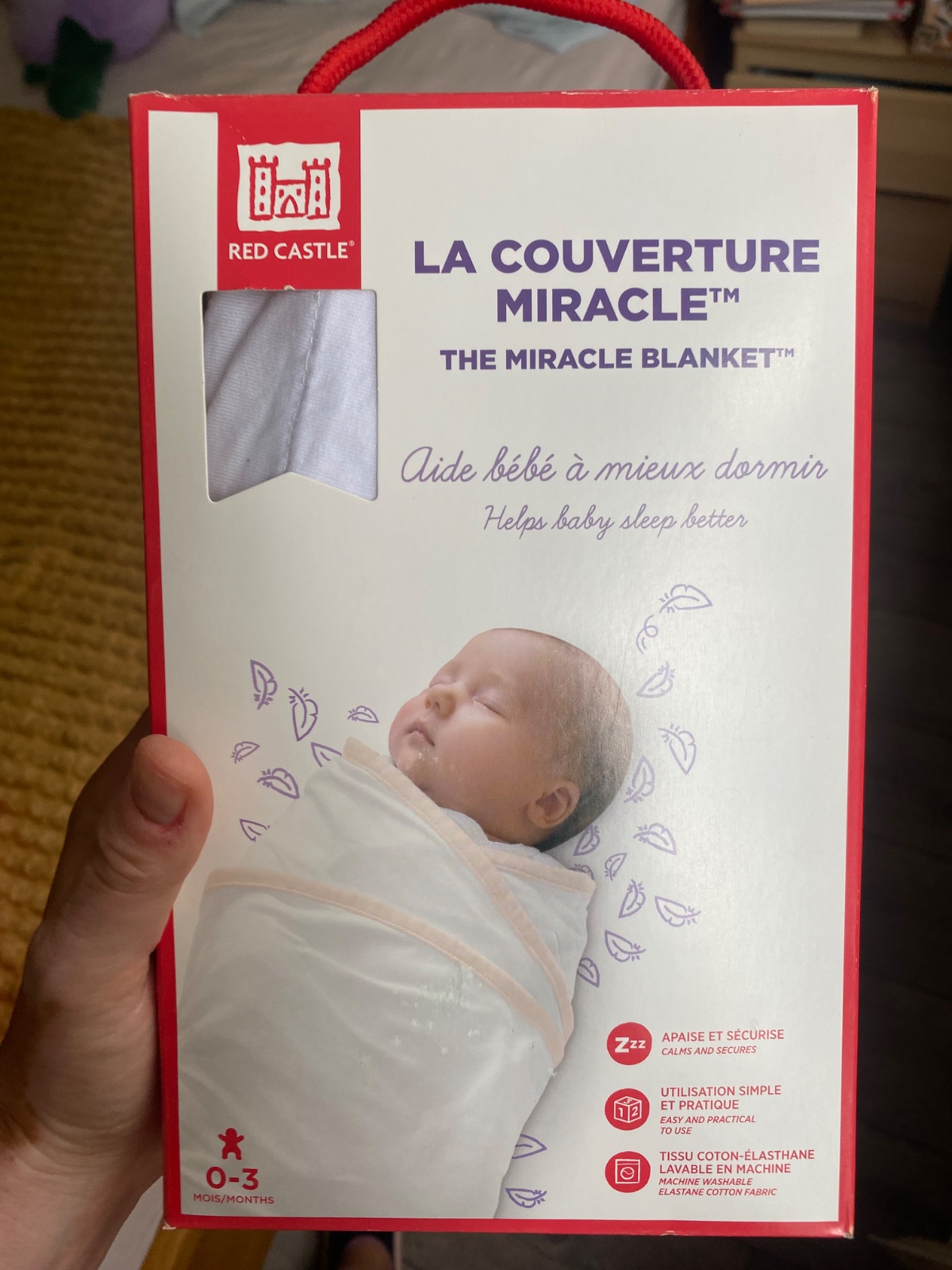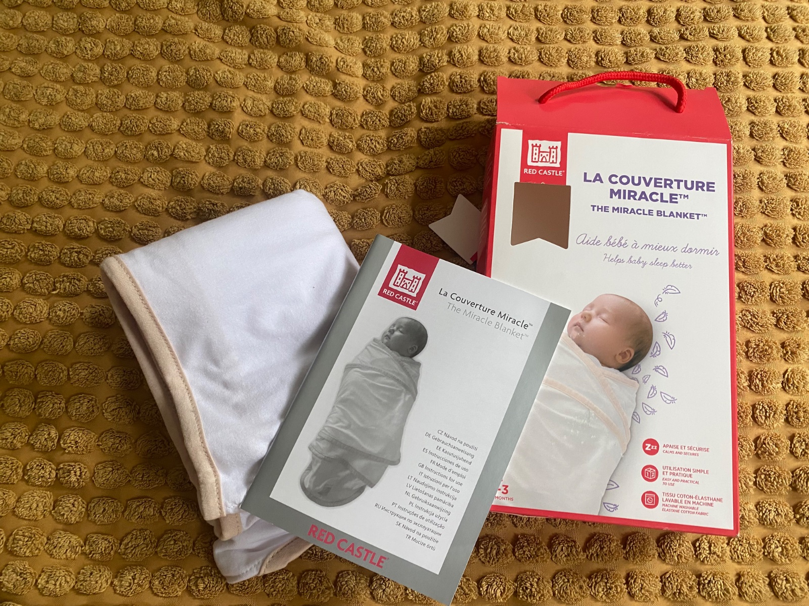 Zavinovačka pre novorodenca The Miracle Blanket™ od francúzskej značky Red Castle je čarovná zavinovačka, ktorá uľahčí vášmu bábätku adaptáciu na nový svet, do ktorého sa narodilo. Do zavinovačky môžete baliť bábätko hneď po pôrode, je teda vhodná od 0 do 3 mesiacov. Zavinovačka v bielej farbe je vyrobená zo 100% jersey bavlny a nezapína sa ani suchým zipsom, ani gombíkmi, takže bábätko nikde netlačí. Vo vnútri zavinovačky je priestor na rúčky bábätka, ktoré potrebuje mať blízko pri tele. Predíde sa tým Morovmu reflexu, ktorý novorodencov prebúdza zo spánku nekontrolovateľnými pohybmi a plačom. Pevným zabalením bábätka vytvoríte na brušku slabý tlak, ktorý dieťatko uvoľní a dovolí mu takmer okamžite zaspať. Do zavinovačky môžete bábo baliť viacerými spôsobmi podľa počasia - jeho nôžky môžu vytŕčať zo zavinovačky, no môžete ich zabaliť dovnútra.