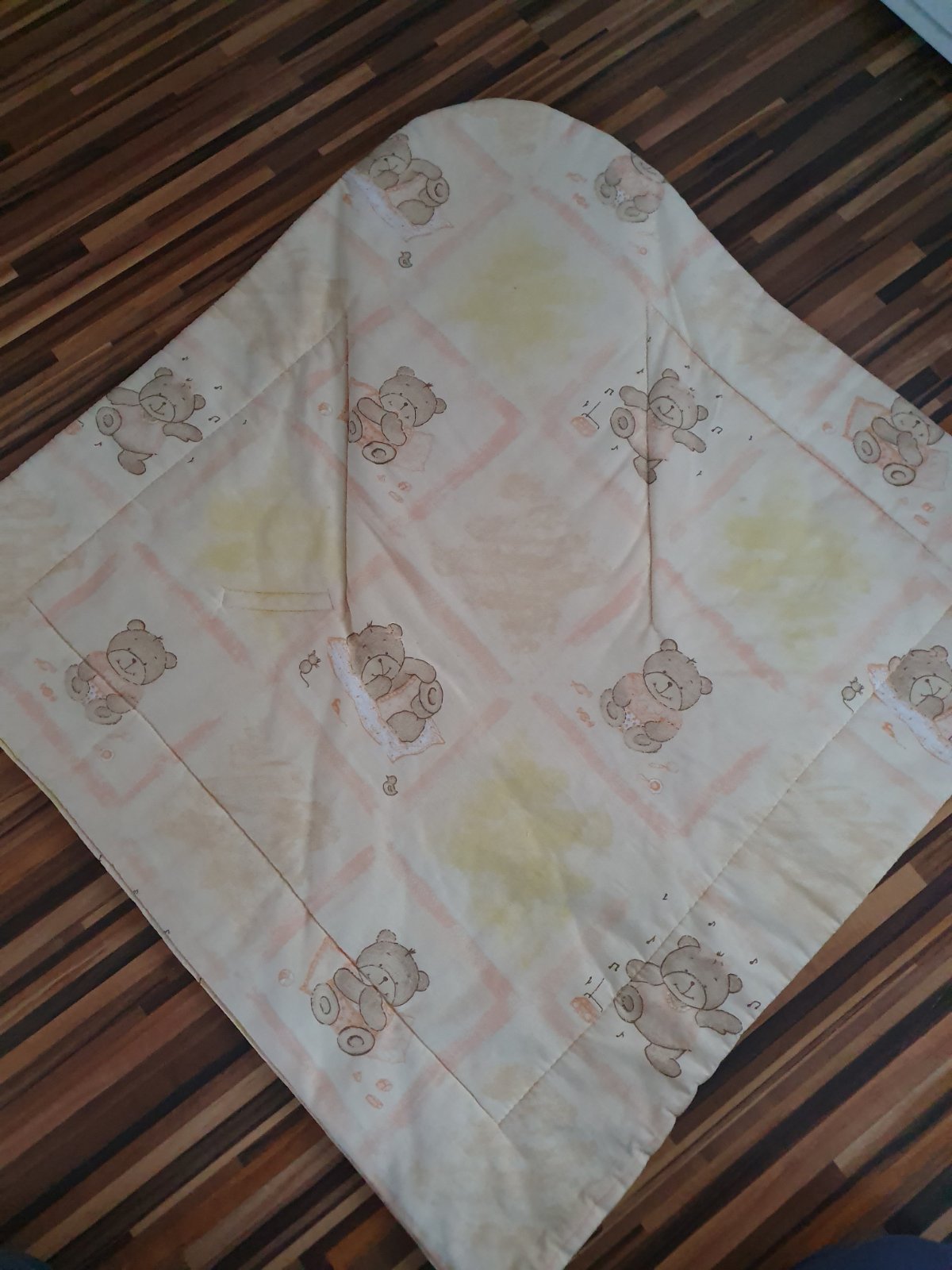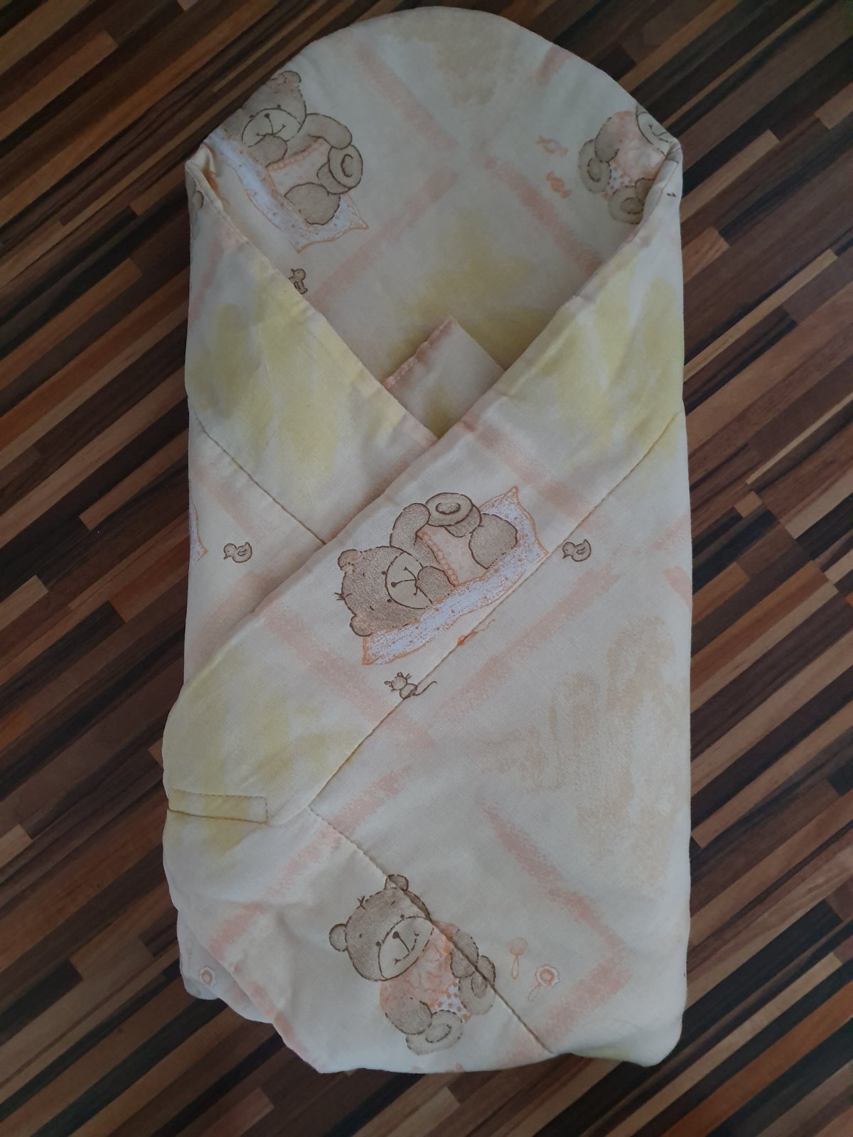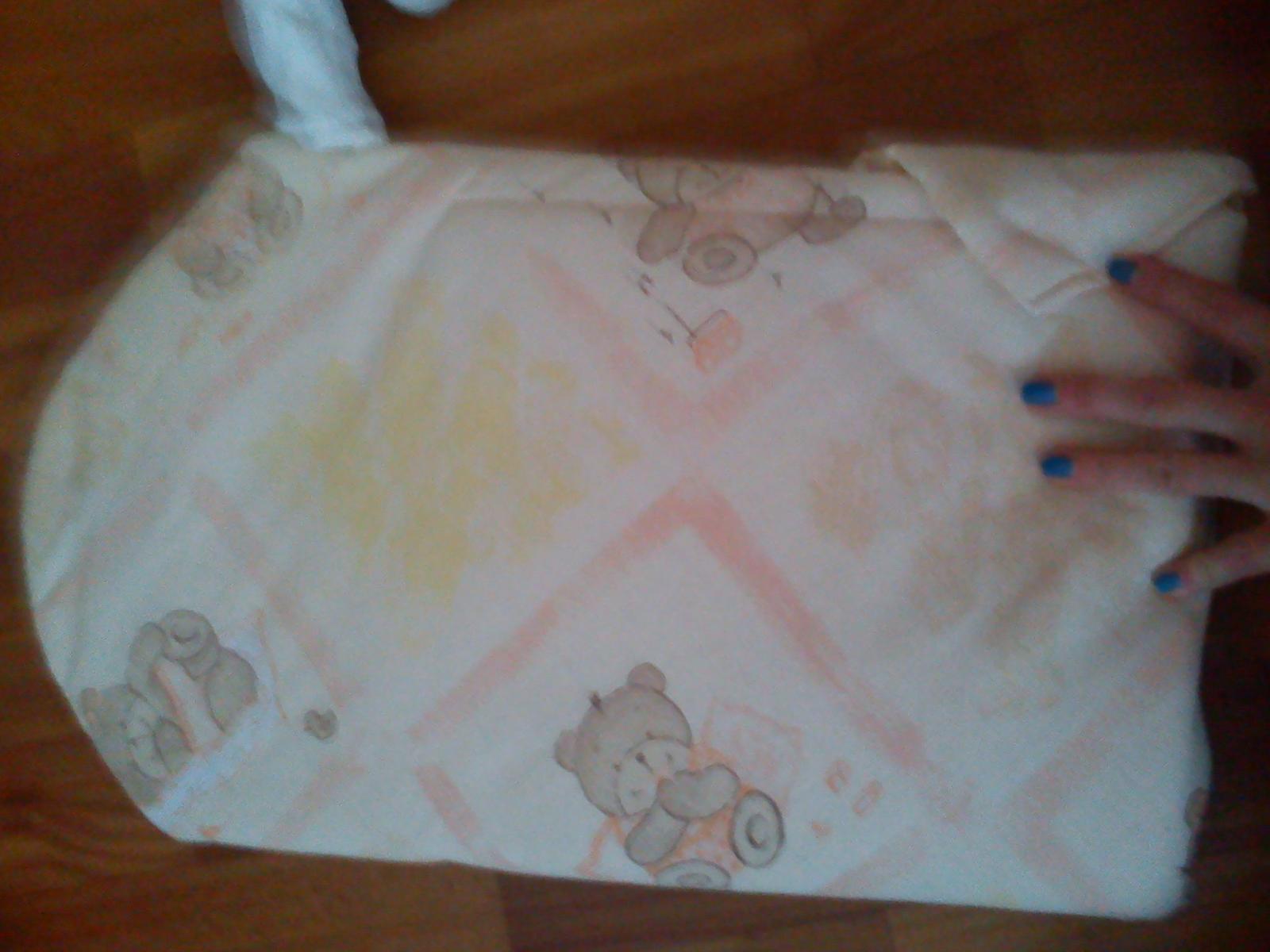 predám nepoužívanú, asi len 2 krat vyuzítu zavinovačku, oranžovožlo lososová farba s motívom macíkom, vhodna aj , pre dievča aj chlapca, je na suchý zips, vnútro sa da aj vybrat a vyprat ju pohodlne, cena bez poštovného