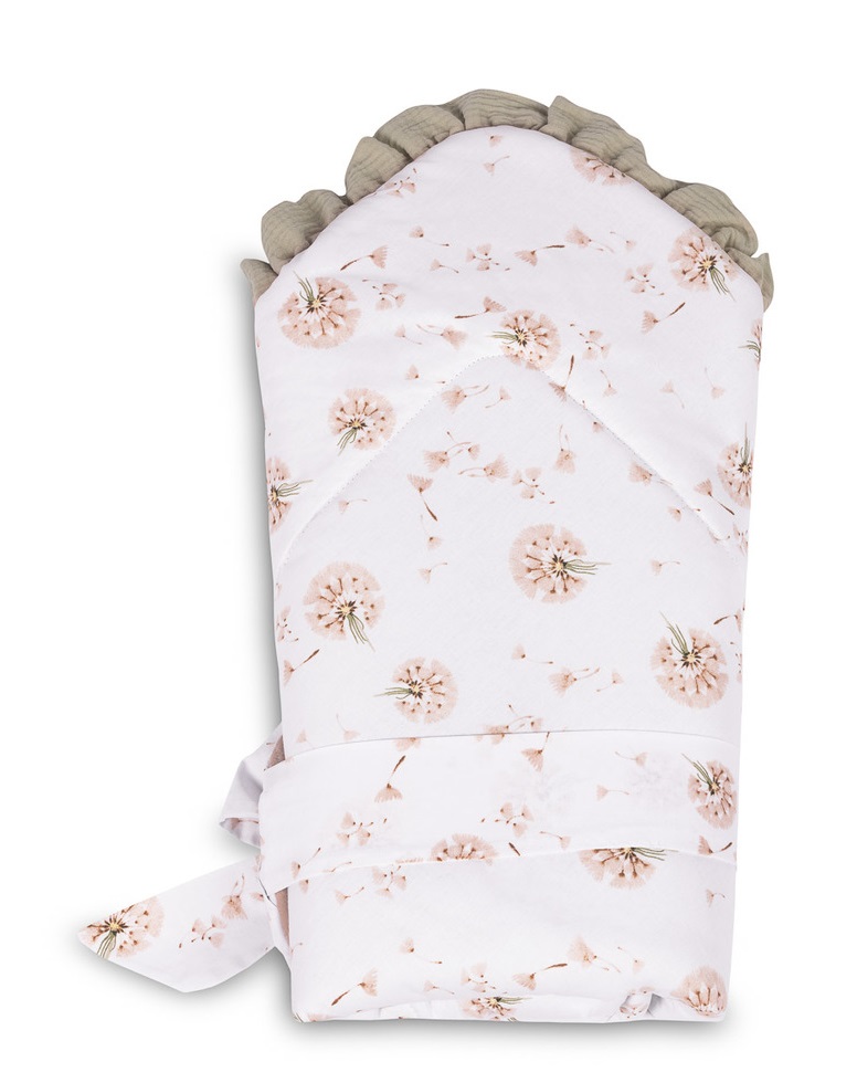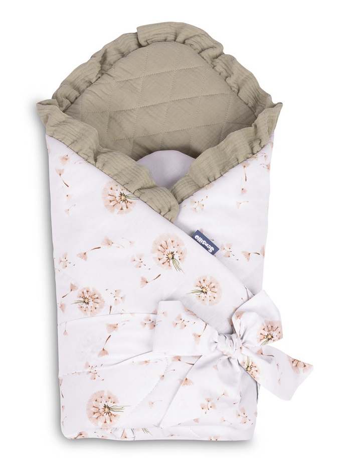 Obojstranná konštrukcia zavinovačky jej dodáva univerzálnosť a umožňuje jednoduchú zmenu vzhľadu. Jedna strana je zdobená jemnou bavlnenou potlačou, ktorá dodáva štýl a pôvab, zatiaľ čo druhá je z kvalitného prešívaného mušelínu. Mušelínová tkanina nielenže prináša pohodlie, ale zároveň chráni detskú pokožku tým, že udržiava správnu mikroklímu – čo je kľúčové v prvých mesiacoch života bábätka.