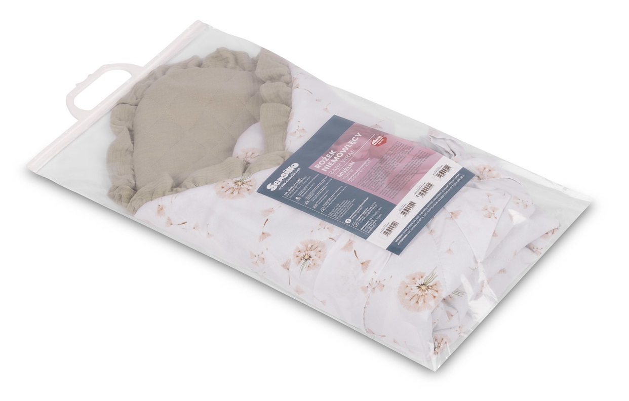 Zavinovačka je vyrobená z najkvalitnejších, bezpečných materiálov, ktoré sú jemné k citlivej detskej pokožke. Antialergická výplň chráni pred alergiami a podráždením, čím zaručuje pokojný spánok a bezpečie každý deň. Jednoduché zaväzovanie na stuhu umožňuje reguláciu a prispôsobenie individuálnym potrebám dieťaťa.