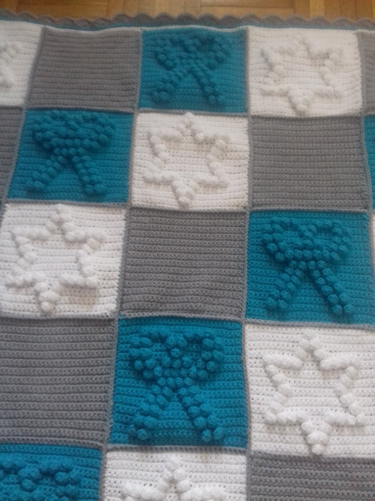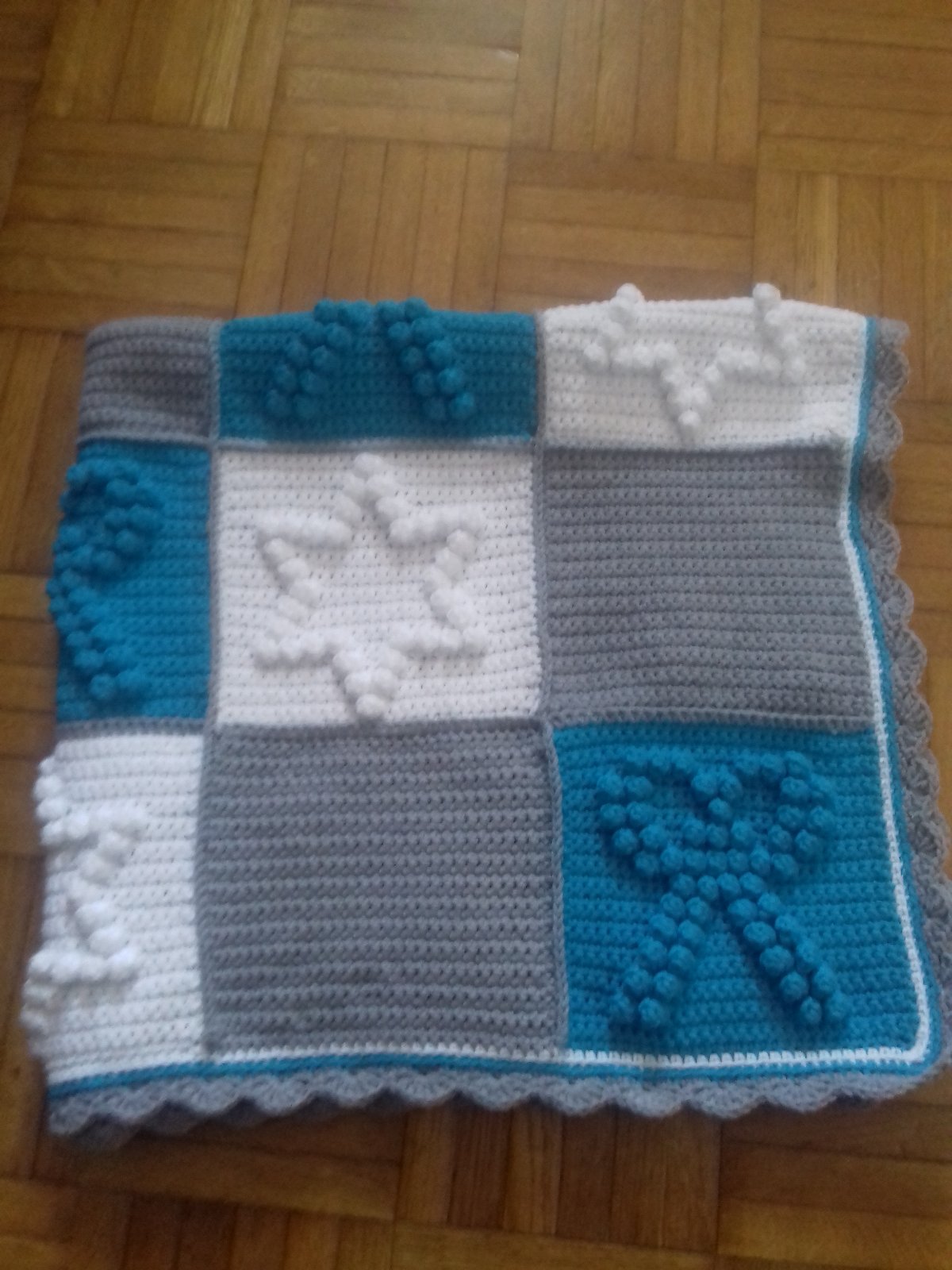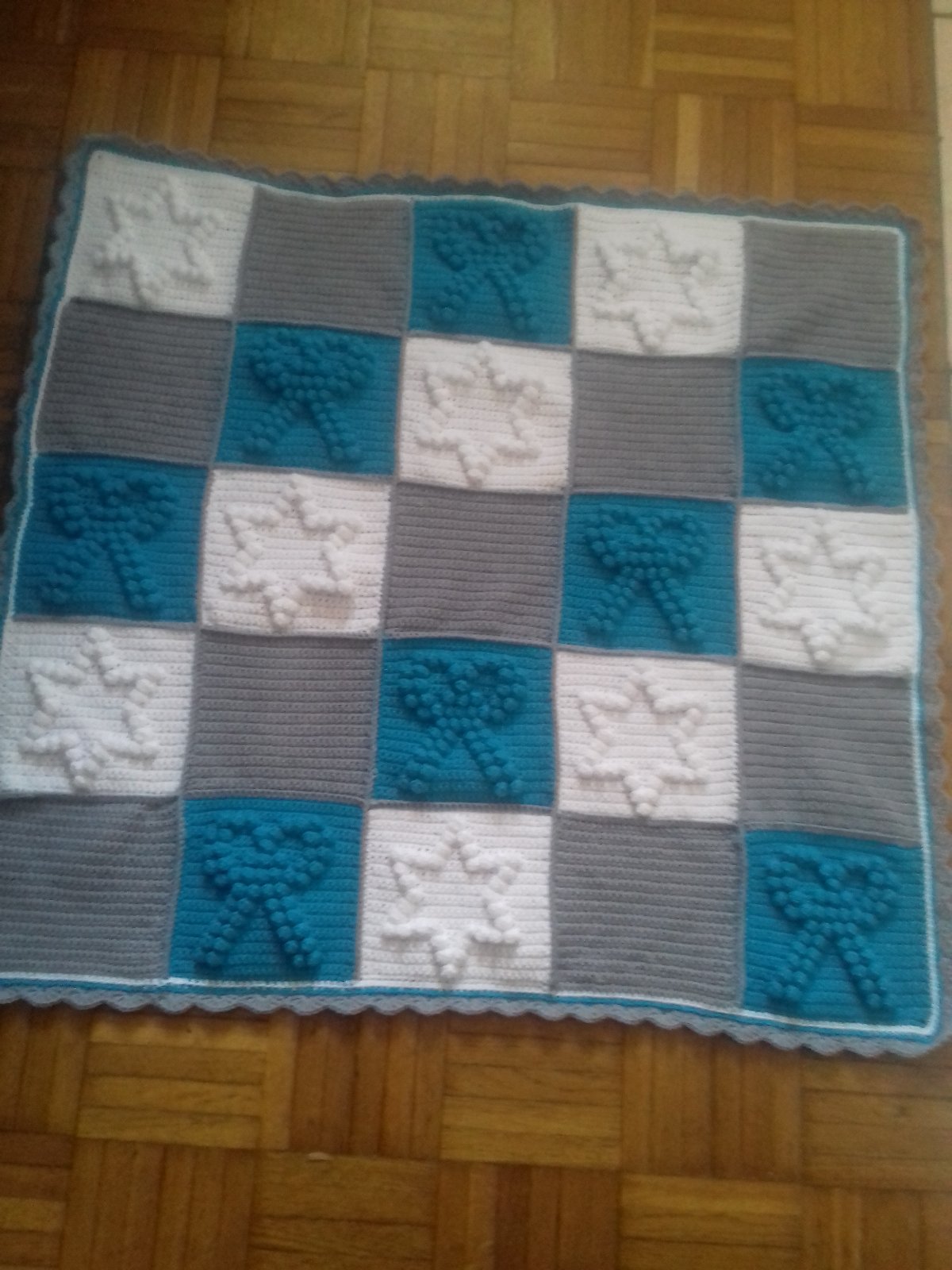 Priadza Yarnart Jeans (55% bavlna, 45% akryl). Vyrobím za mesiac (ak nemám iné objednávky), aj v iných farebných prevedeniach či veľkosti). Cena sa odvíja od veľkosti a použitej priadze. Zálohová platba vo výške 20 € vopred, zvyšok po dokončení deky.