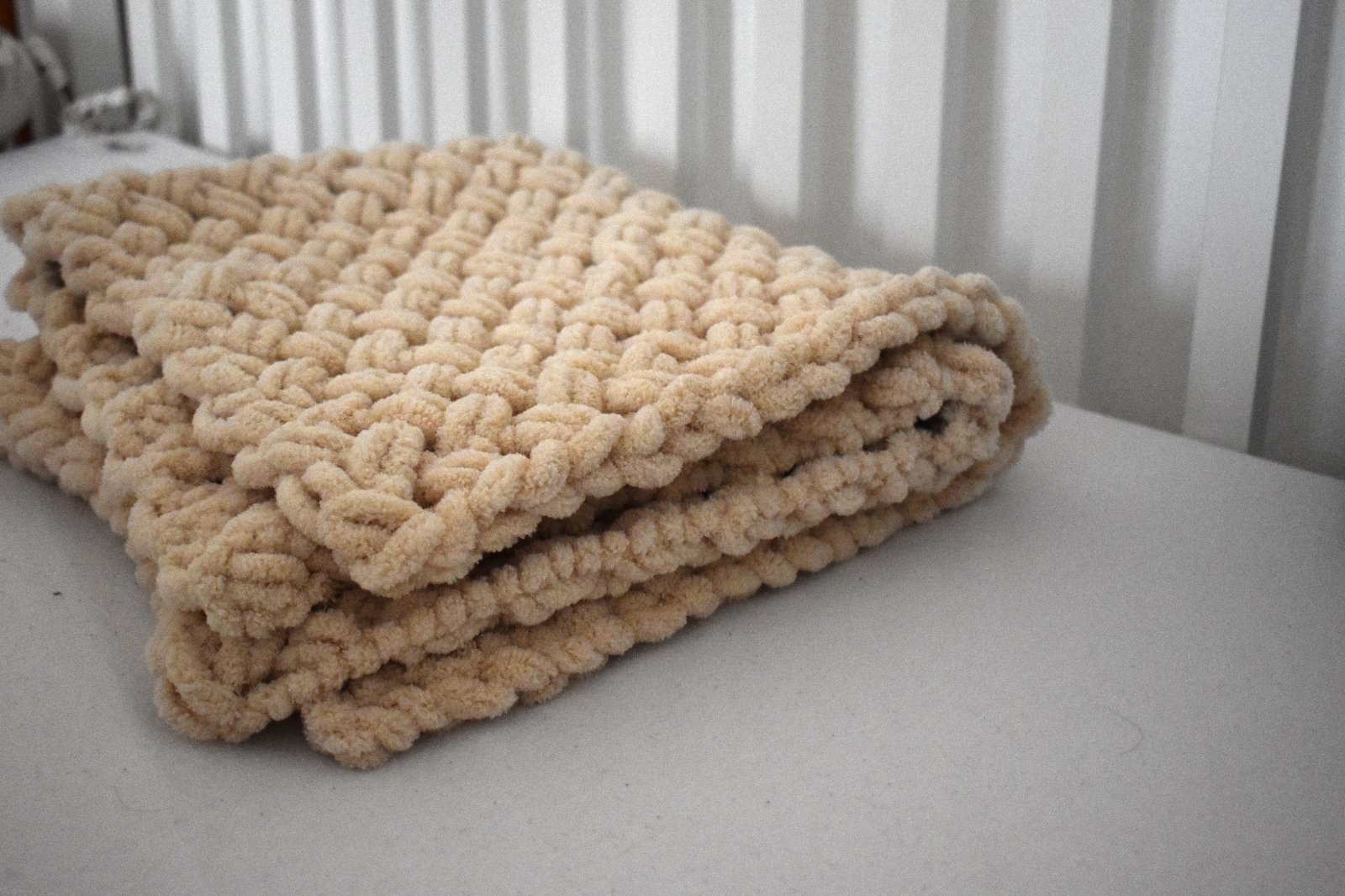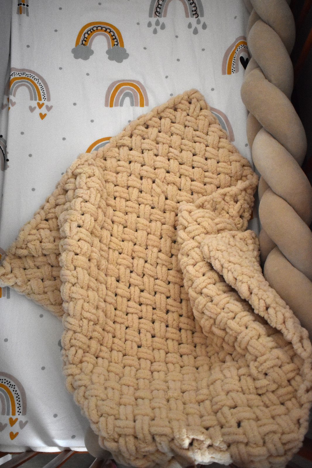 Deka je ručne pletená z priadze Alize puffy. Je vhodná do kočíka alebo postieľky na chladné dni, ako darček k narodeniu bábätka či ku krstu. Neobsahuje žiadne alergény, takže je bezpečná aj pre najmenších. Vlákno priadze má maličké vlásky teda pôsobí ako plyš.