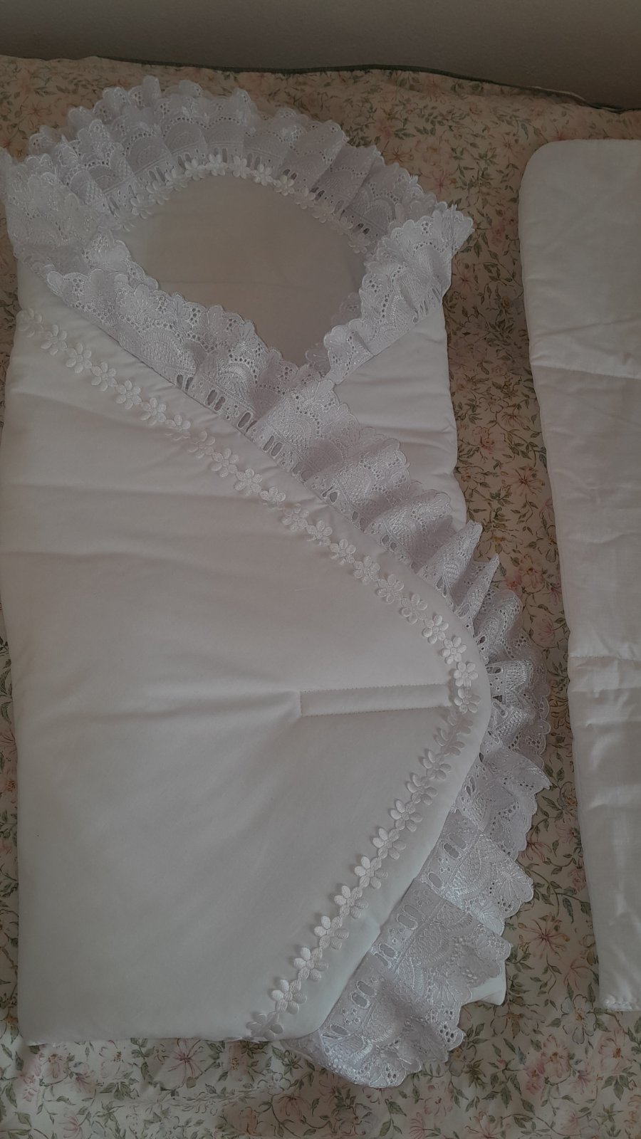 Nádherná zavinovačka na suchý zips s bavlnenou stuhou, používaná na striedačku s inou, výborný stav, stačí vyžehliť volániky😊 Rozmer 70x70