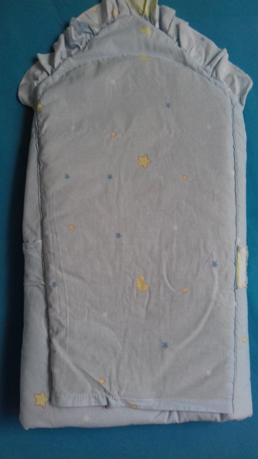Zavinovačka na suchý zips českej značky Tulec trend, ktorá neskôr poslúži ako deka/prikrývka v super stave. Z jednej strany bavlnená látka s motýlikmi, z druhej príjemný jemný plyš. Rozmer 75x75 cm.