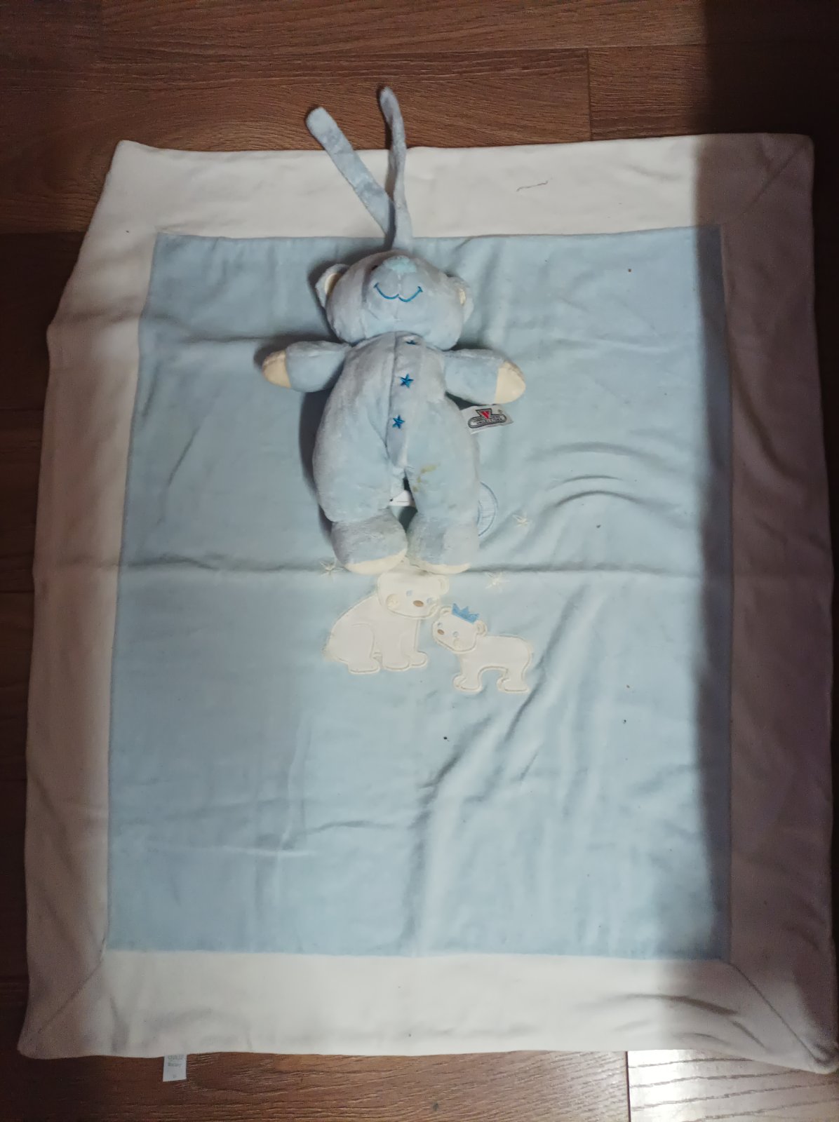 Detska deka a hraci macko, je na natahovanie a hra uspavaciu melodiu.