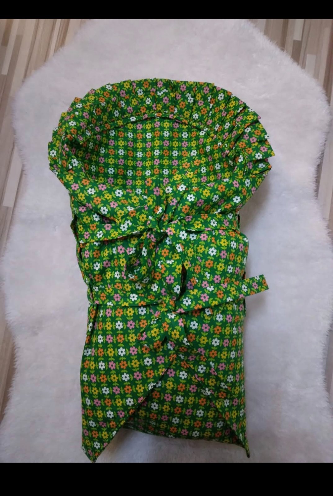 Zavinovacka bola pouzita 1x a to na krste, stav ako nova, zapinanie na suchy zips + mašľa na gumičke. Lemovana je jemnou cipkou, zo zadnej strany ma pevnu vypln (kokosove vlakno ak sa nemylim)