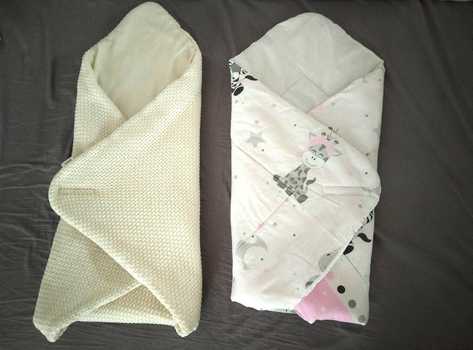 Predám set 2ks zavinovačky/ dečky pre bábätko. Rozmery sú na fotkách. Jedna je na viazanie, na tej vidieť známky po praní. Sú bez závad a poškodení. Cena spolu za obe je 7