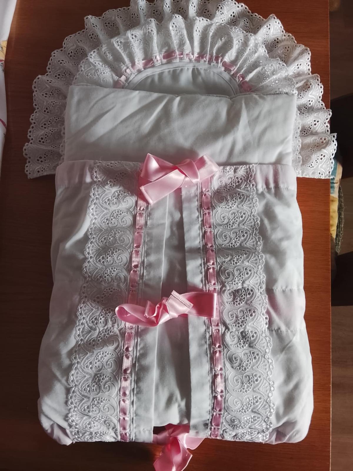 Zavinovačka je krásna, bielučká. Nebola ani raz použitá, my sme krstili až keď z nej malinký vyrástol. Je v nej aj výplň - slabučko ružová dečka.