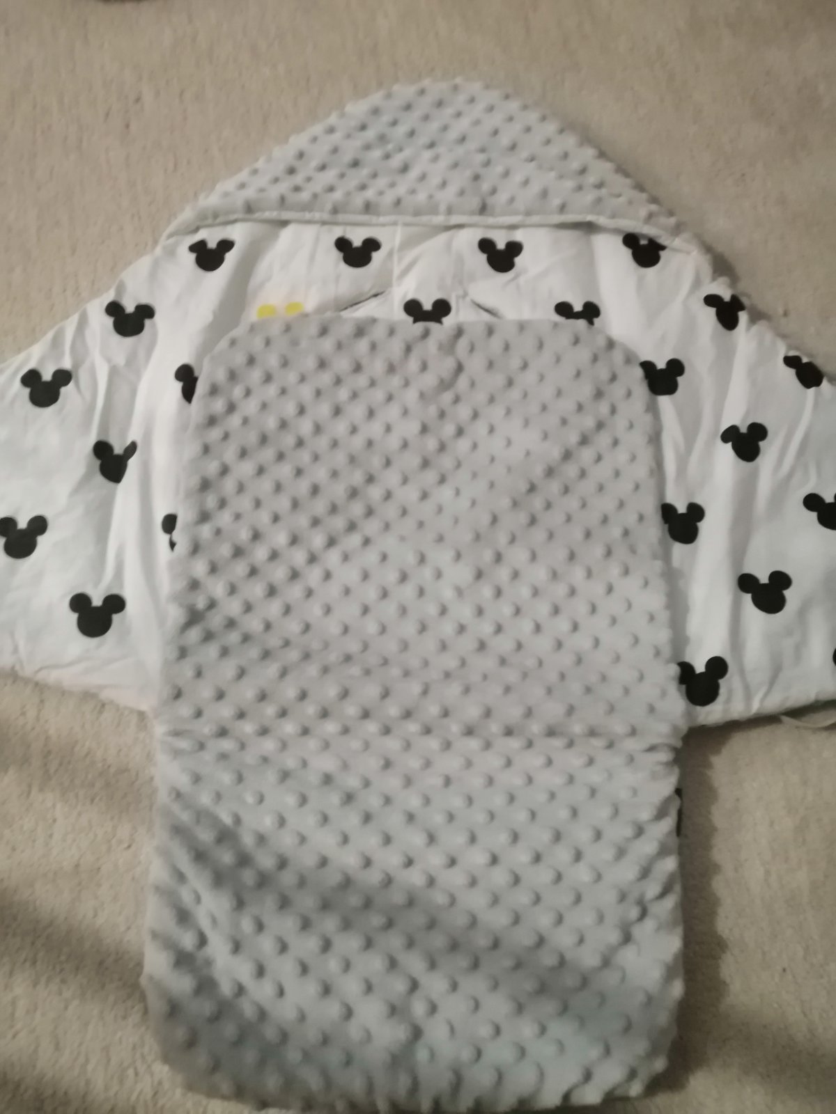 "Fino" letna deka. Je kombinaciou uzasnej "Minky" a 100% bavlny (event. vyplnena vatelinou). Bavlna je predprana, takze zbiehanie oproti minky by hrozit nemalo 🙂. Su tam aj stuzky pre male zvedave ...