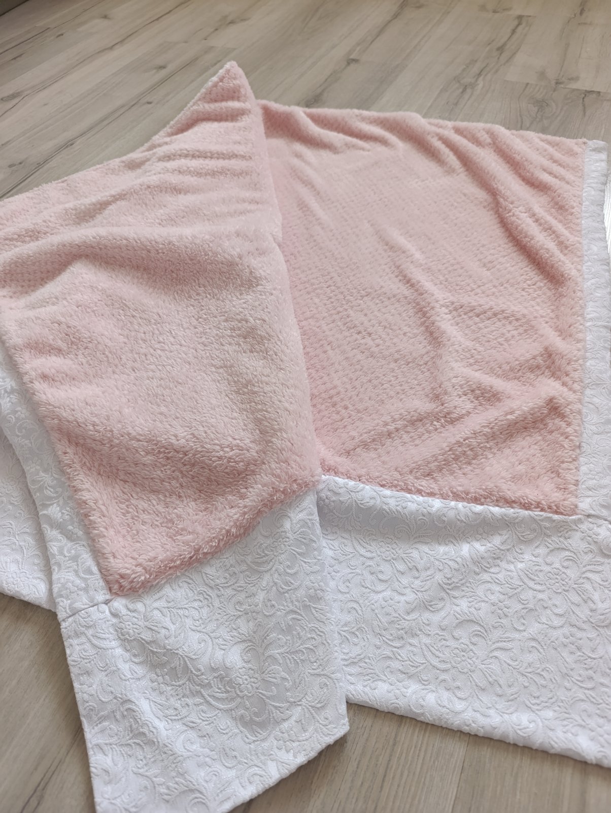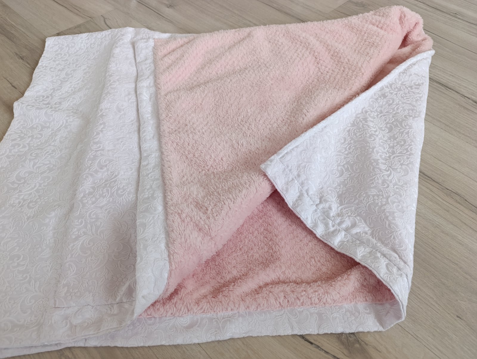 Nádherná kvalitná dečka použitá 2x, ako NOVÁ. Z jednej strany krásna biela látka so vzorom kvetov s lesklým nádychom a z druhej strany je hebká ružová. Deka je teplá, rozmer 875x 130cm, kupovaná v detskom obchode za vyše 20€. Pri výmene 10€