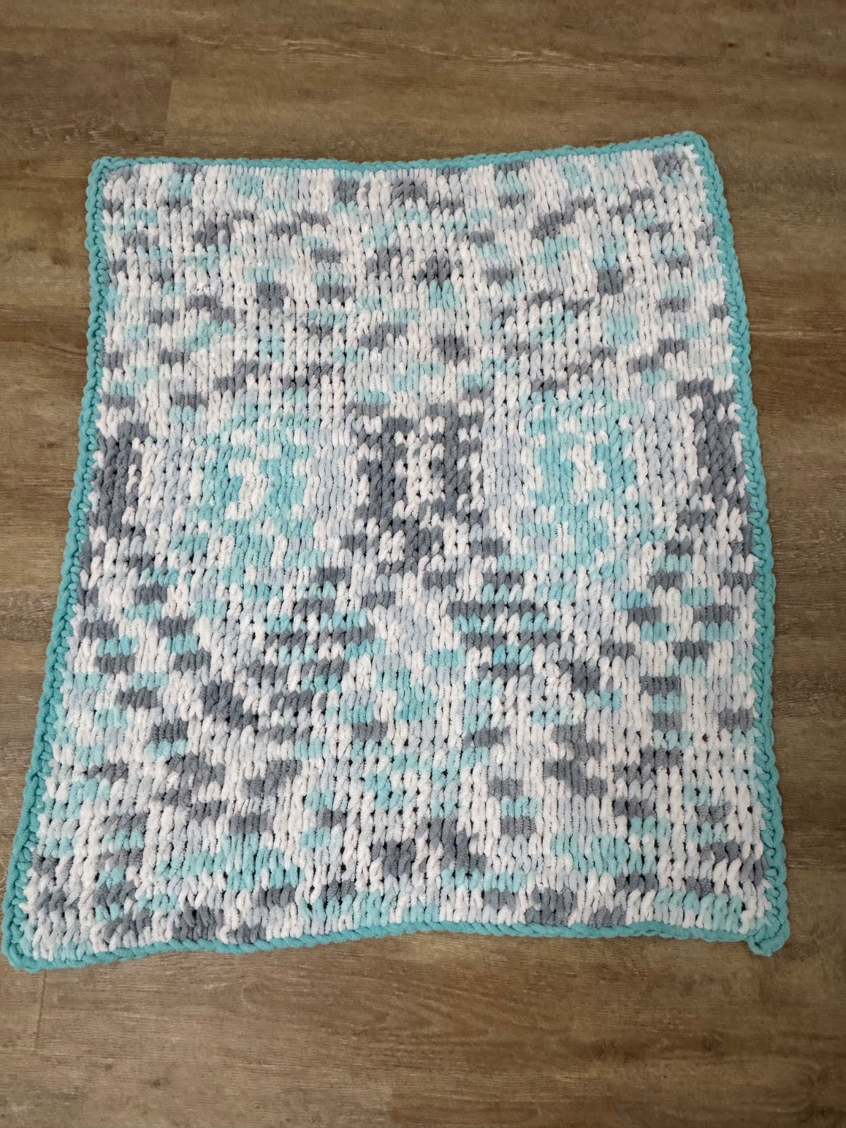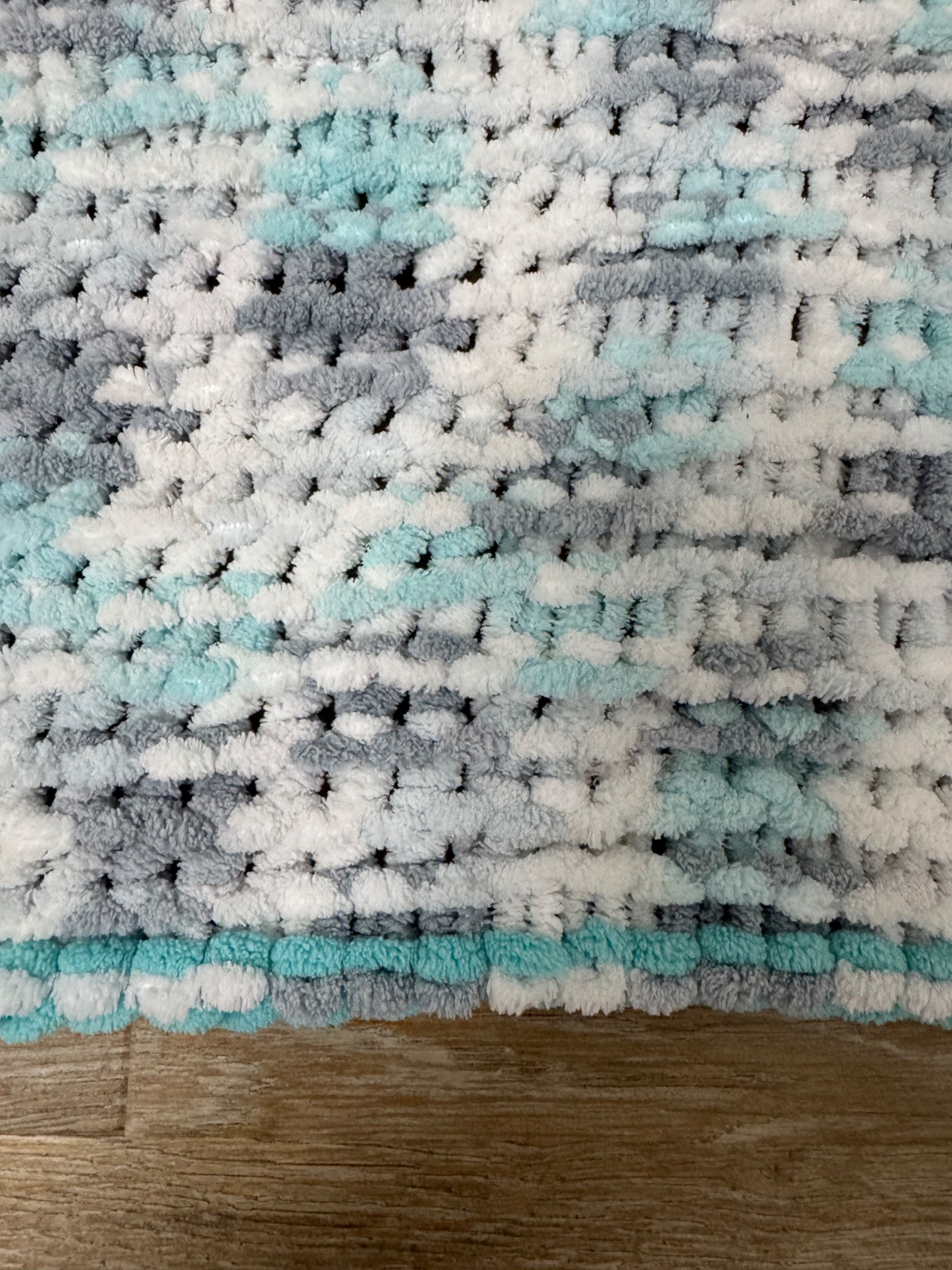 Ponúkam peknú príjemnú ručne robenú tyrkysovo-sivo-bielu dečku z mäkkučkej puffy vlny. Používaná na striedačku, mali sme viac, vo výbornom stave..;) Poštovné podľa taríf.