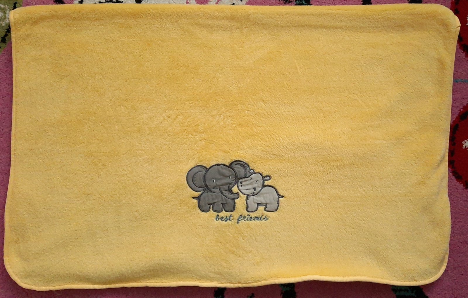 Ponukam teplucku žltú deku so sloníkmi, 2-3x pouzita, rozmer 77x98cm