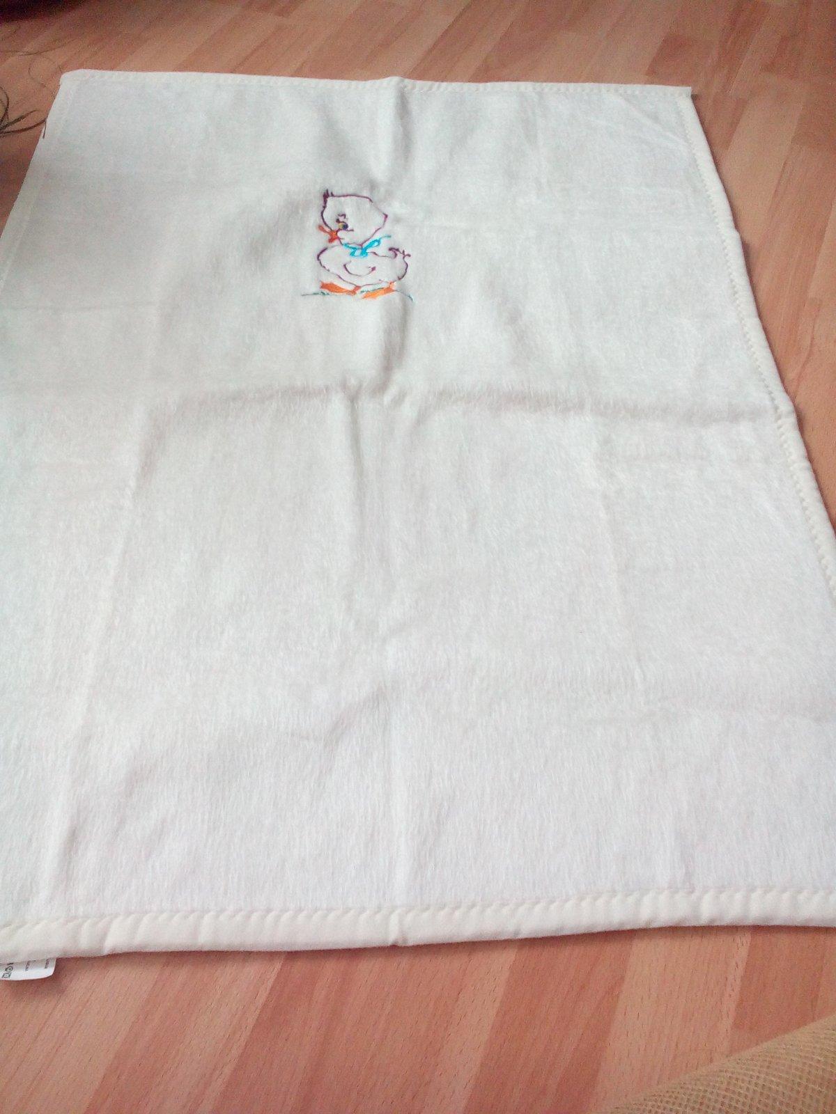 Pekna biela deka iba raz použita ,ako nova rozmery dlžka 101cm ,širka 75cm ,vhodna aj do kočika aj na perinku