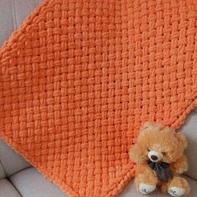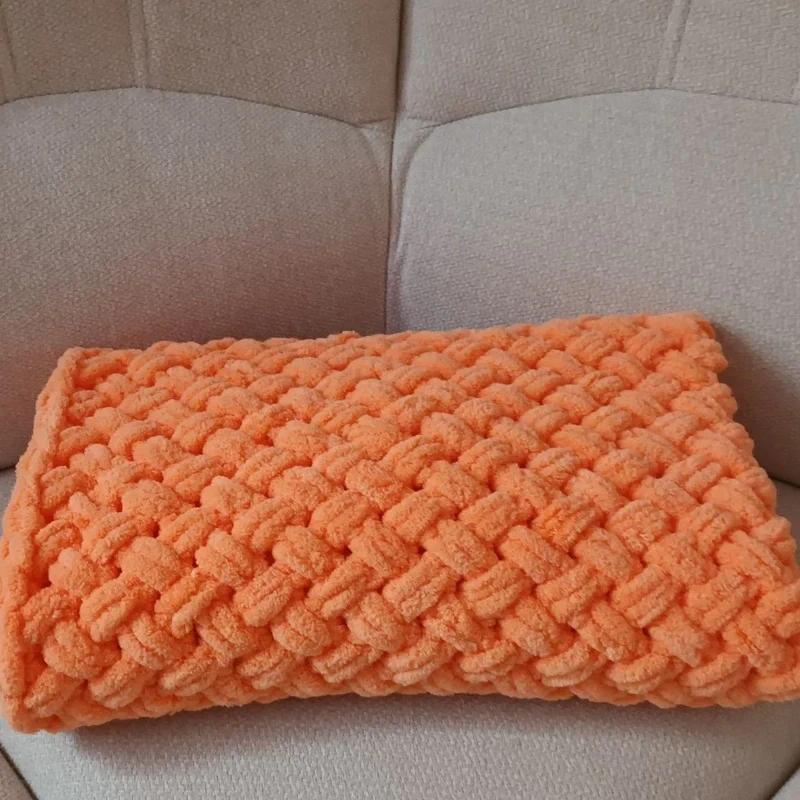 Detská puffy deka oranžová, ručne pletená, rozmer 65x85 cm, farba oranžová