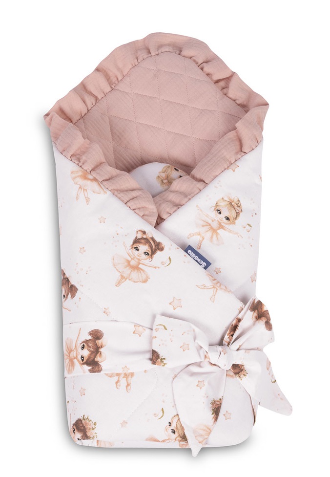 Obojstranná konštrukcia zavinovačky jej dodáva univerzálnosť a umožňuje jednoduchú zmenu vzhľadu. Jedna strana je zdobená jemnou bavlnenou potlačou, ktorá dodáva štýl a pôvab, zatiaľ čo druhá je z kvalitného prešívaného mušelínu. Mušelínová tkanina nielenže prináša pohodlie, ale zároveň chráni detskú pokožku tým, že udržiava správnu mikroklímu – čo je kľúčové v prvých mesiacoch života bábätka.