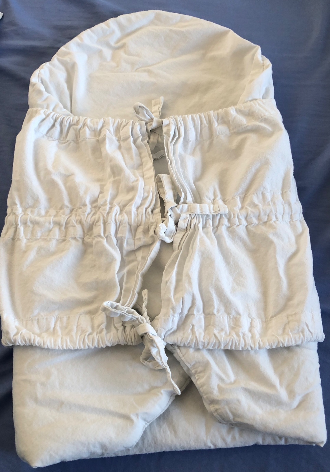 Smotanovo biela zavinovacka od 0-12 mesiacov, vhodna na prechodné obdobie. Dá sa použiť aj do autosedacky, so zapinanim pásov na cvoky .... zapinanie zavinovacky je na suchý zips...ako nova.