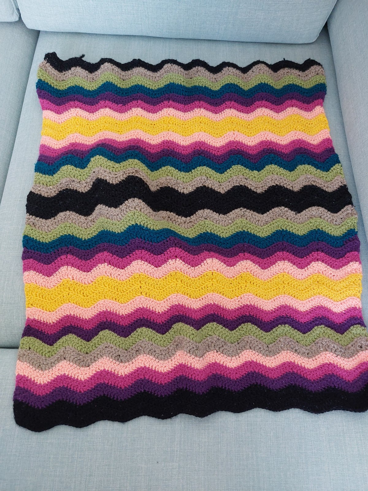 Mnou robena deka do kocika, trochu tensia nez druha v inzerate. Rozmer cca 50x60 cm. Cierna sa mi minula a tak je v strede pouzita hrubšia,ale osvedcilo sa mi to,kedze je tam deka trochu tazsia,že to lepšie držalo a nesmykalo so pri pohybe. Pouzivana.