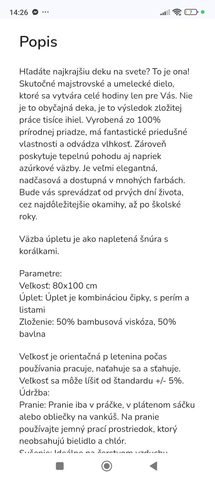 predam deku bavlnenu 95x75 prijemna bavlnena deka jemna .. kvalitna bez jedneho zmolku