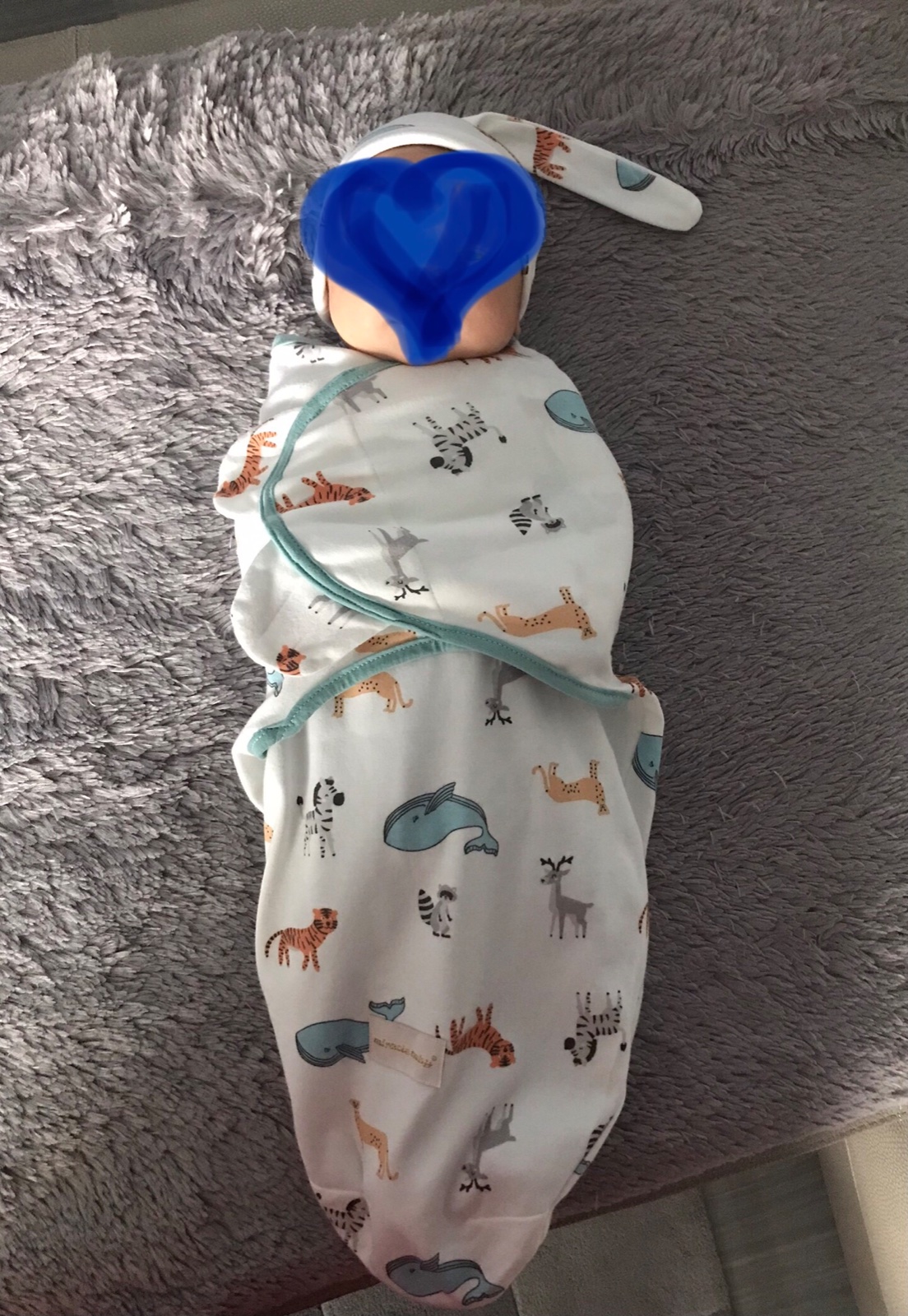 Kvalitná ulitka s čiapočkou, veľkosť písaná L - 3-6m, ja som používala od narodenia - záleží od veľkosti bábätka. Kúpená v USA. Má suchý zips, ktorý neškriabe. Zadná dĺžka je 55cm. Cena je za kus. Mám zvieratkovú s oranžovým lemovaním, bielo-modrú, bielo-oranžovú a šedú s veľrybou. Fotené bábätko má 8t.