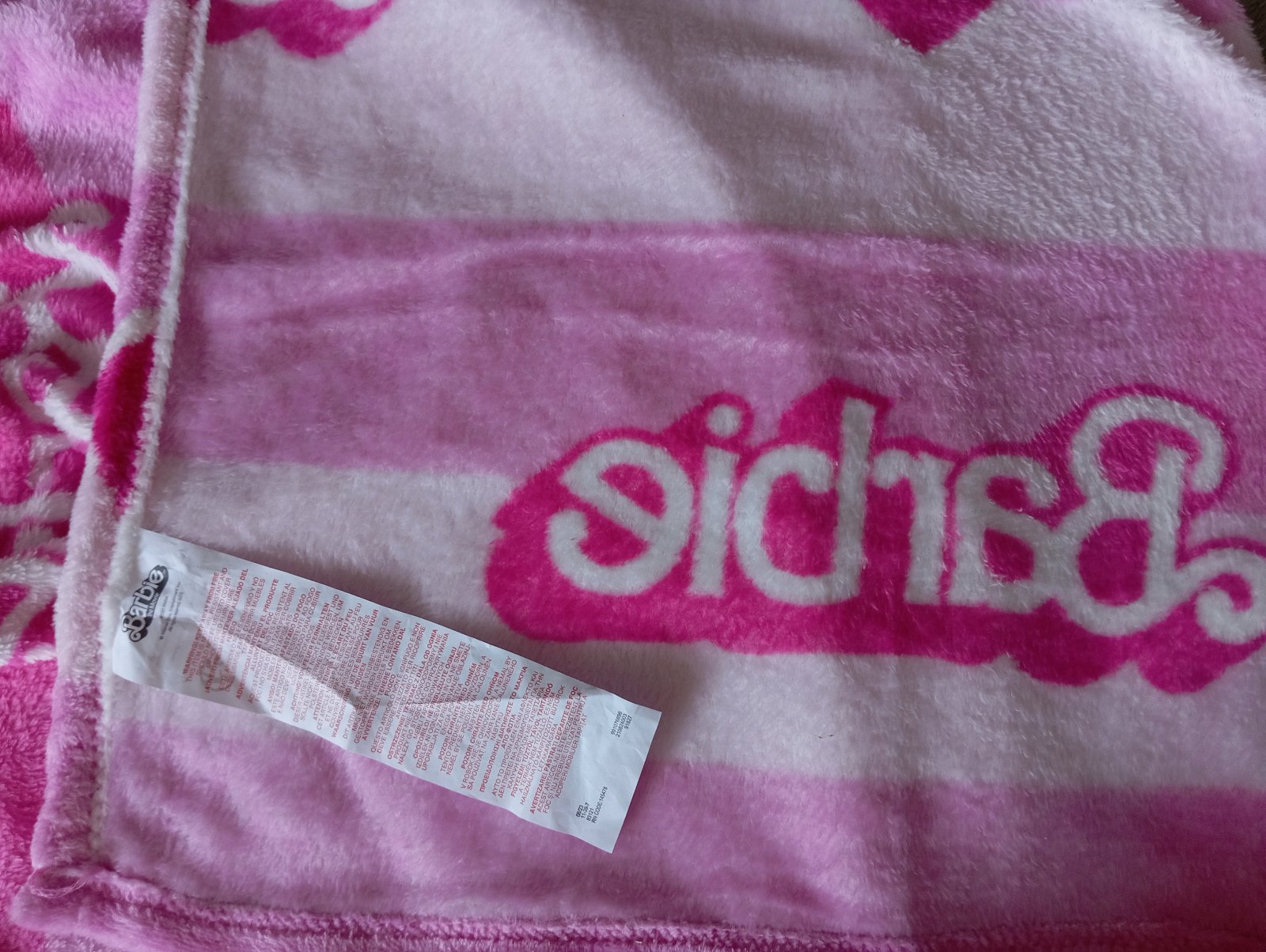 Mäkučká plyšová deka s flitrami a nápisom Barbie. Nepoškodená, s visačkou. Rozmery sú 120x150cm.