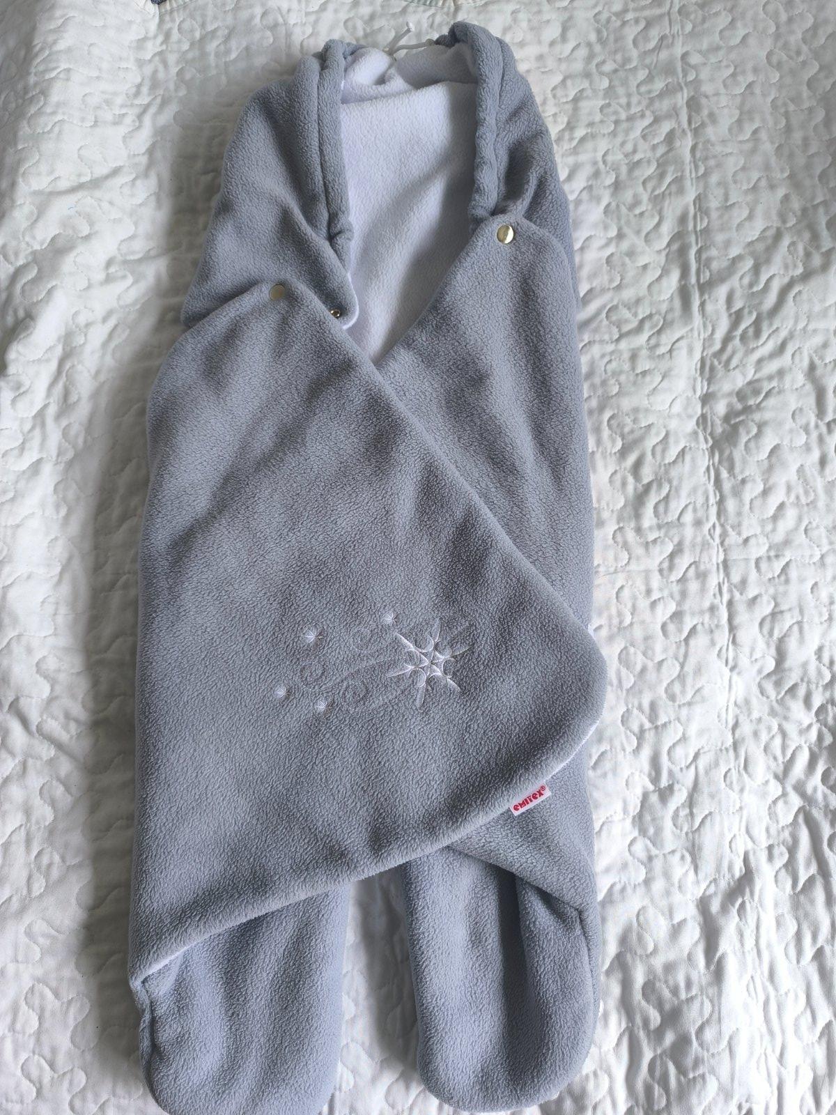 Zavinovačka - deka do vajíčka s nožičkami Zn. Emitex. Zapínanie na puky, suchý zips a na hlavičke prispôsobenie cez šnúrku. Bez poškodení.