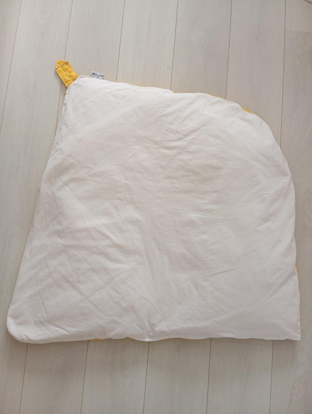 Predám páperovú zavinovačku od českého výrobcu Elizame. Obliečka je vymeniteľná. Zavinovačka je bez poškodenia, látka sa nežmolkuje. Na bledej časti sú dva malé, bledé fľaky od kakaa (viď fotku). Nepoužívam silné pracie gély ani aviváže, takže je perinka prakticky bez vône.