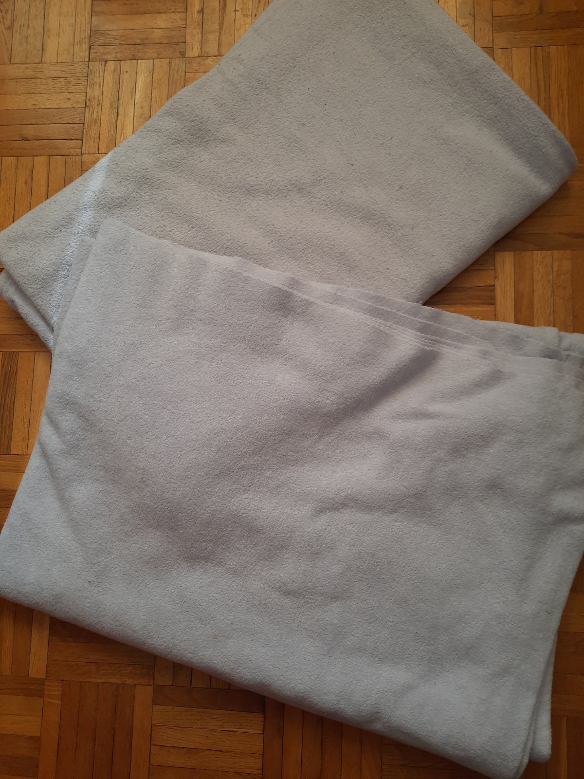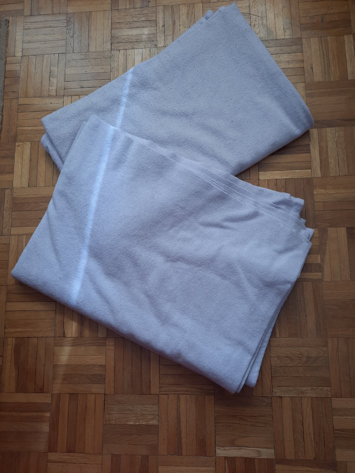 Boli použité ako prehoz na posteľ. Môžu sa použiť aj ako deka- je to teplejšia látka. Príp.ušiť z nej niečo iné- mantinel, dekor.vankúš, mikinu, legíny a pod. Jedna z nich má sem-tam zašpinené.