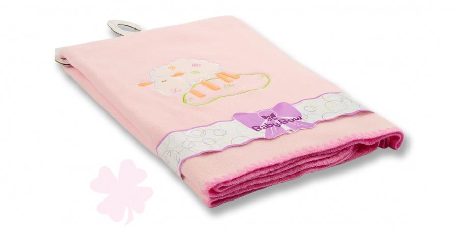 Jemná flisová deka s ozdobným obšitím a výšivkou ovečky.