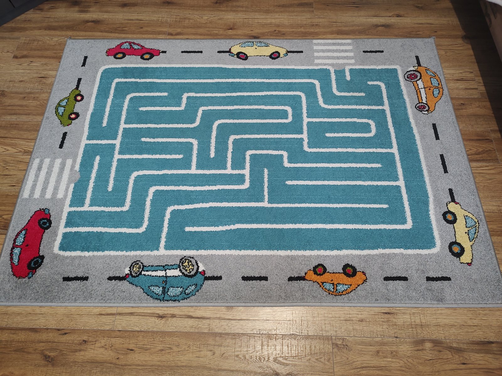 Krásny koberec do chlapčenskej izby s bludiskom. Rozmery 120x170cm.