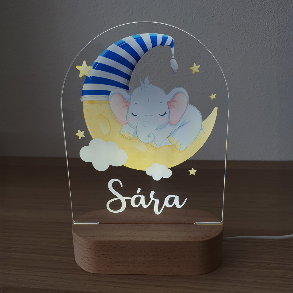 LED nočná lampa s vlastným menom dieťatka a motívom sloníka rozžiari nielen detskú izbičku, ale aj očká detí. Je to tiež ideálny darček k narodeniu dieťatka, na krstiny, narodeniny, či meniny.