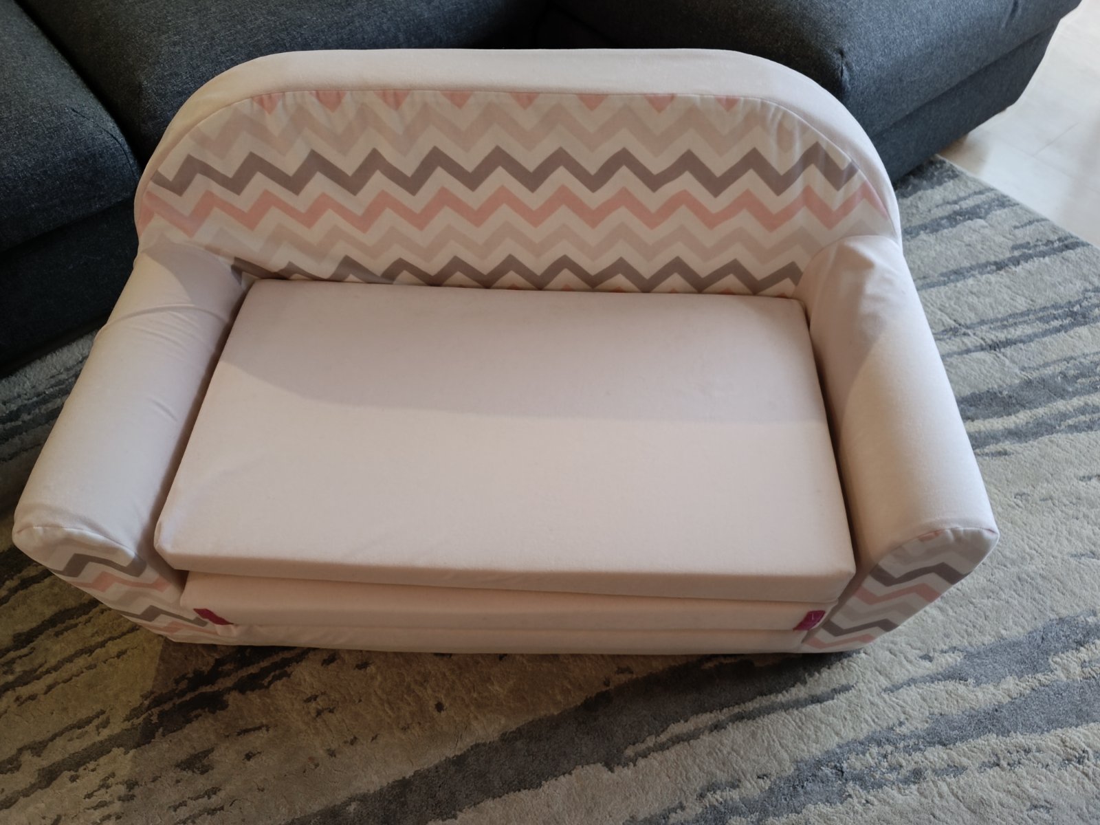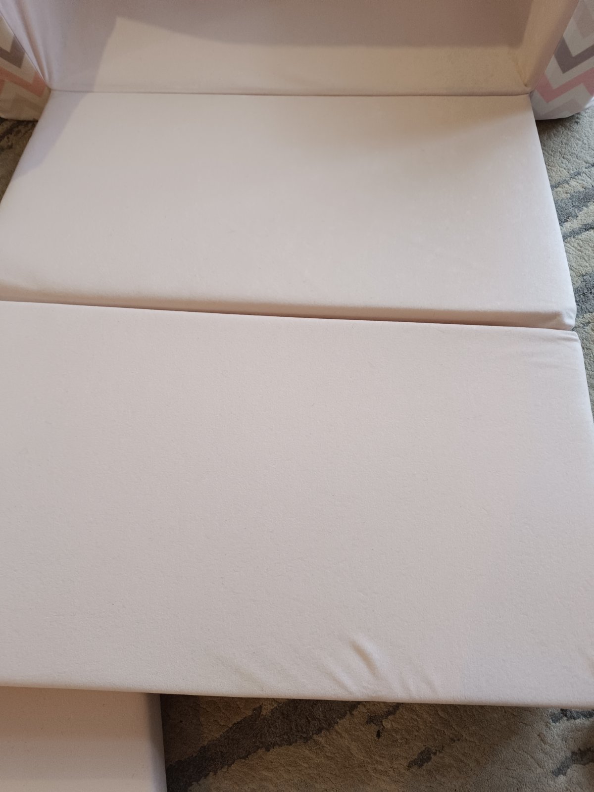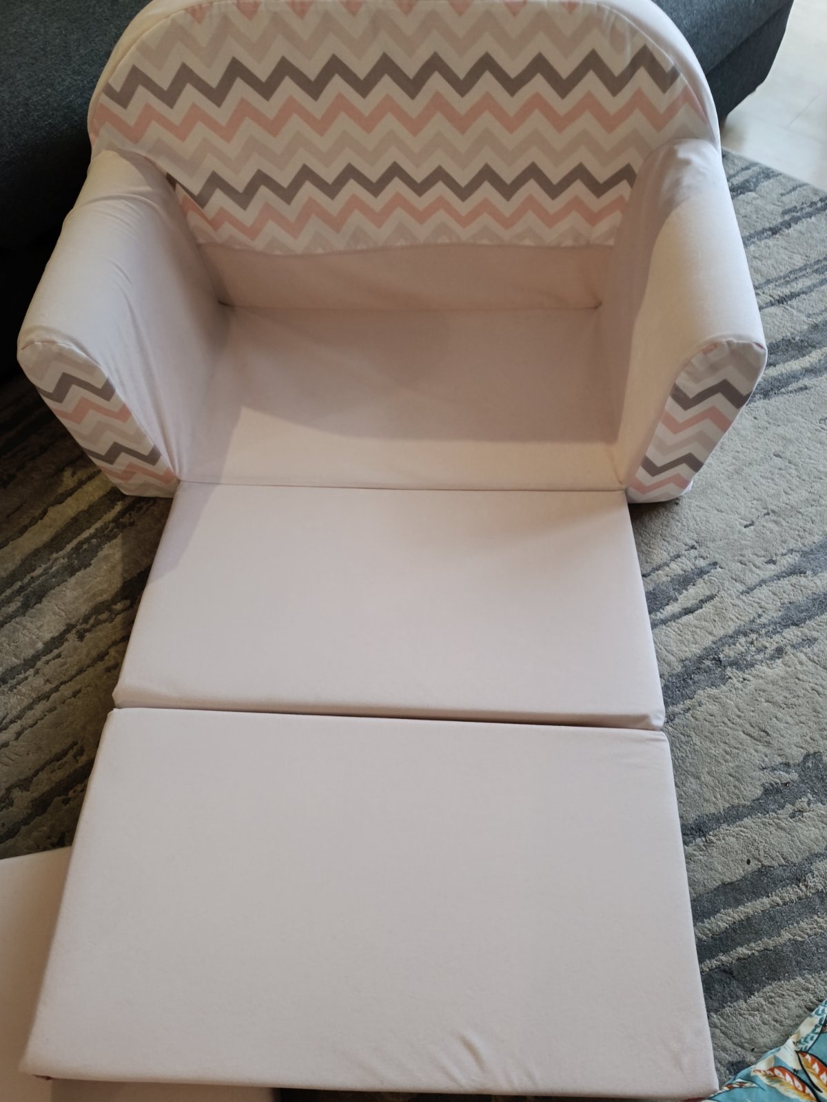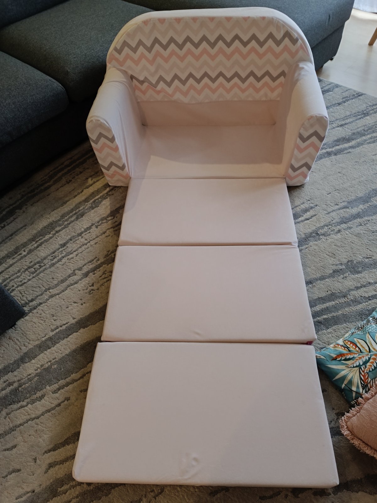 Gaucik šírky cca 98-100 CM( časť na sedenie cca 75cm) s pratelny poťahom rozkladatelny až do dĺžky 160cm( hĺbka jedného sedaku 40cm)...jediná vada je na molitane neviem ani od čoho to je ale pod poťahom to vidno nie je ..molitan je tu jemne nalomeny. Je ku každému ešte vankúšik aj taburetka v ružovej farbe.