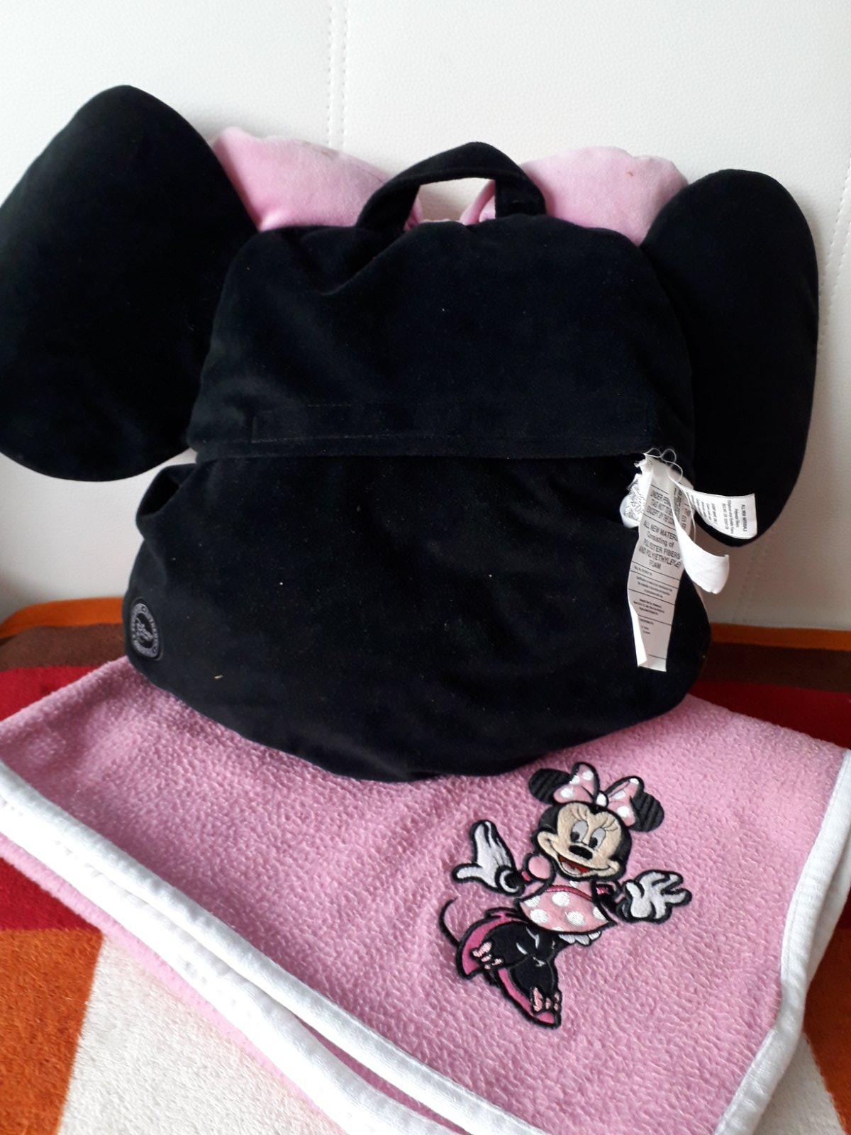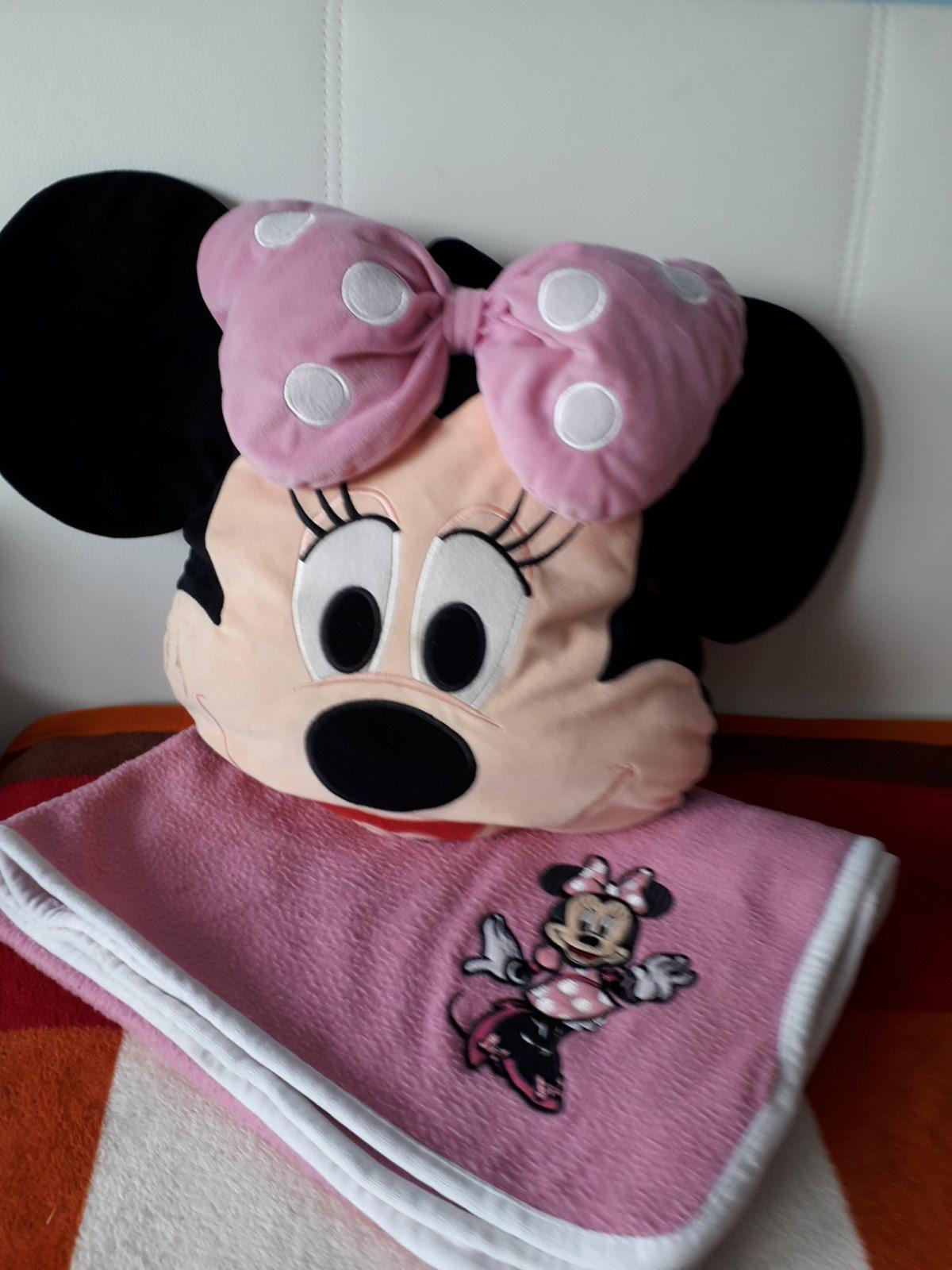 Predám o r i g i n á l vankúšik Minie s dečkou. Kúpené v USA. Cetrifikát je na zadnej strane vankúšika obr. 4. Dečka je trochu žmolková, ale dá sa plne využívať. Dá sa uložiť do vankúšika zo zadnej časti, tam je vrecko na zips. Vankúšik sa dá aj zavesiť. Na hlavičke medzi mašličkami má pútko.