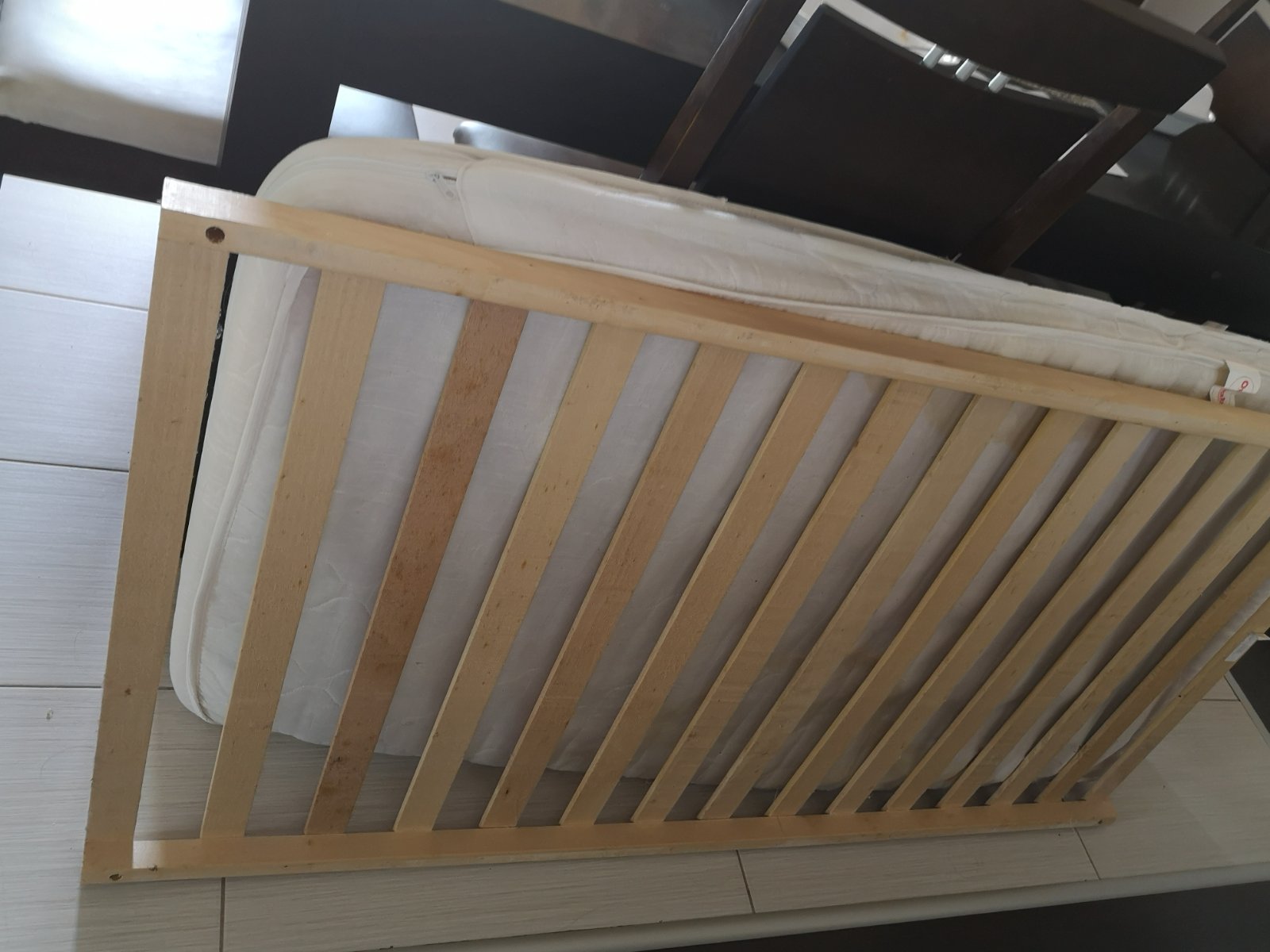 *detská postieľka pre matrac 140 x 70 cm, rozmery 144*76*93, keď je poskladaná pre bábätko, drevený rošt je súčasťou, je možné ho umiestniť do 3 polôh,