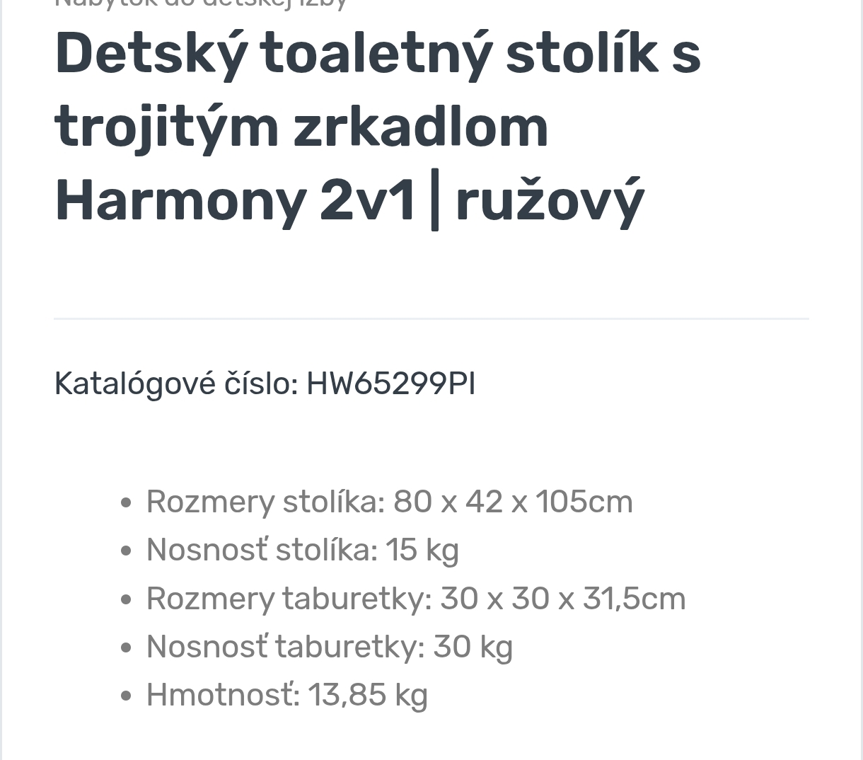 Kozmetický stolík pre dievčatko
