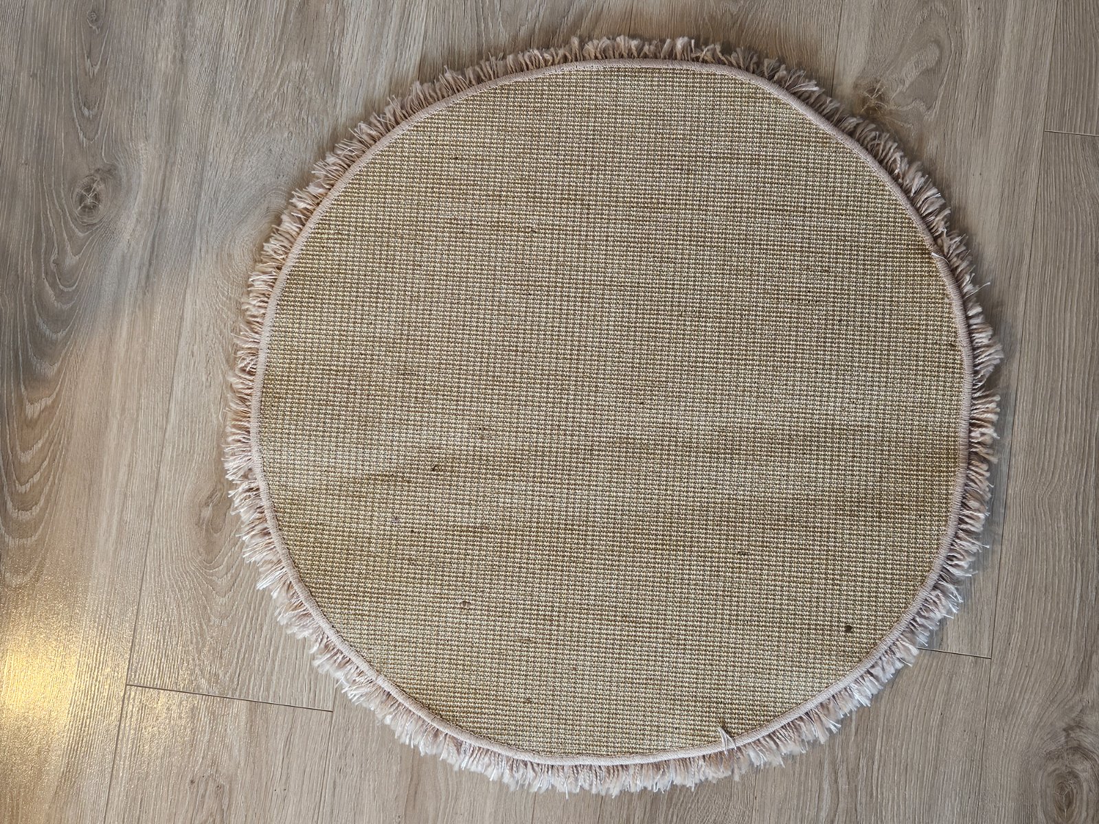 Okruhly kobercek staroruzovej farby v super stave. Priemer 66 cm.