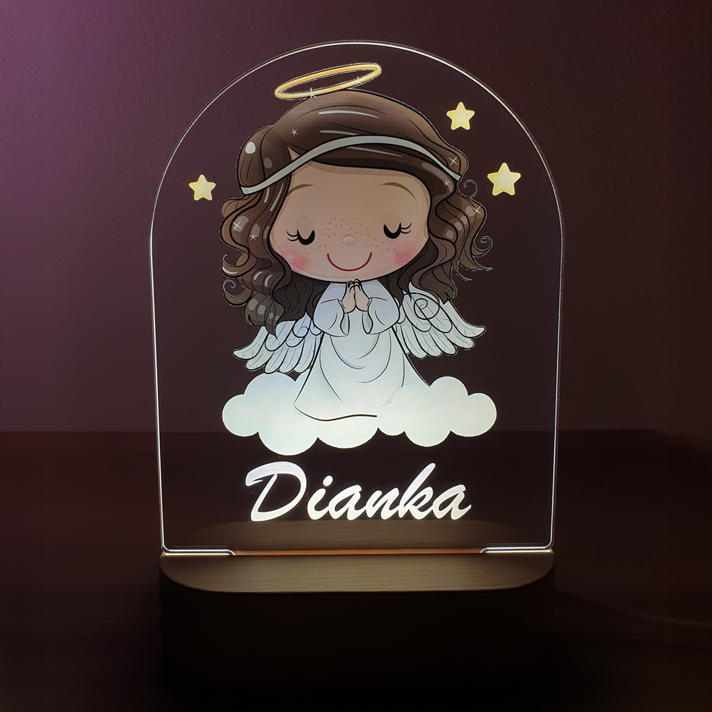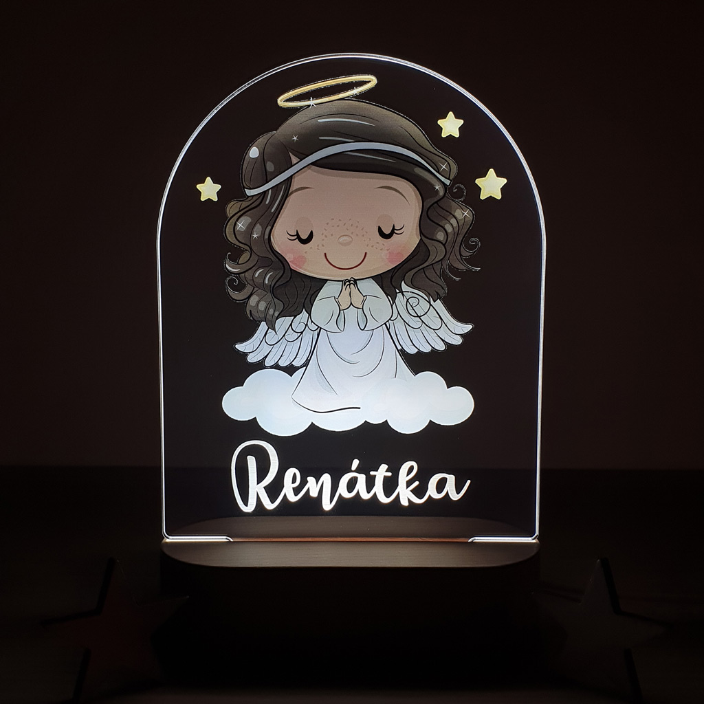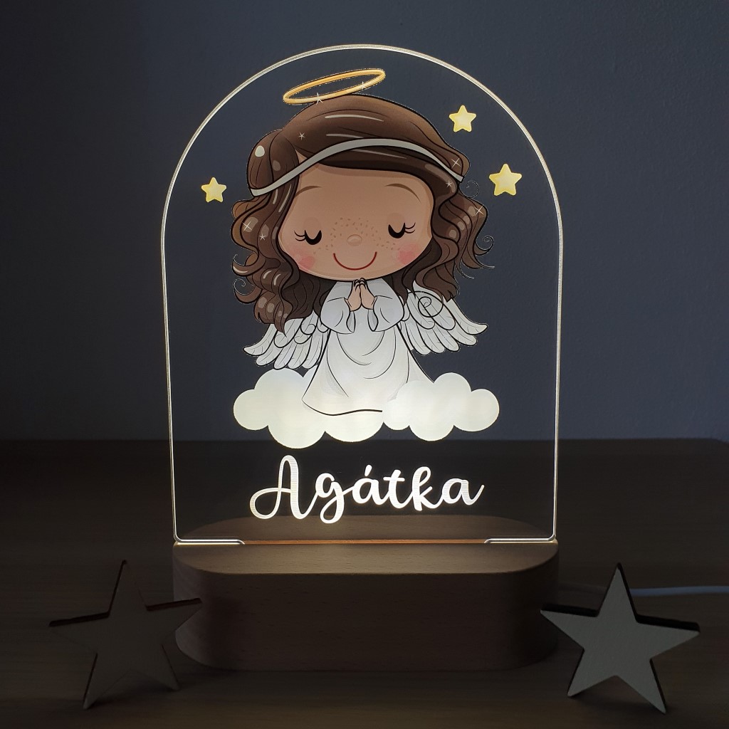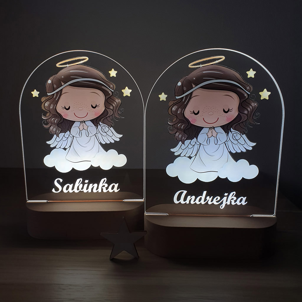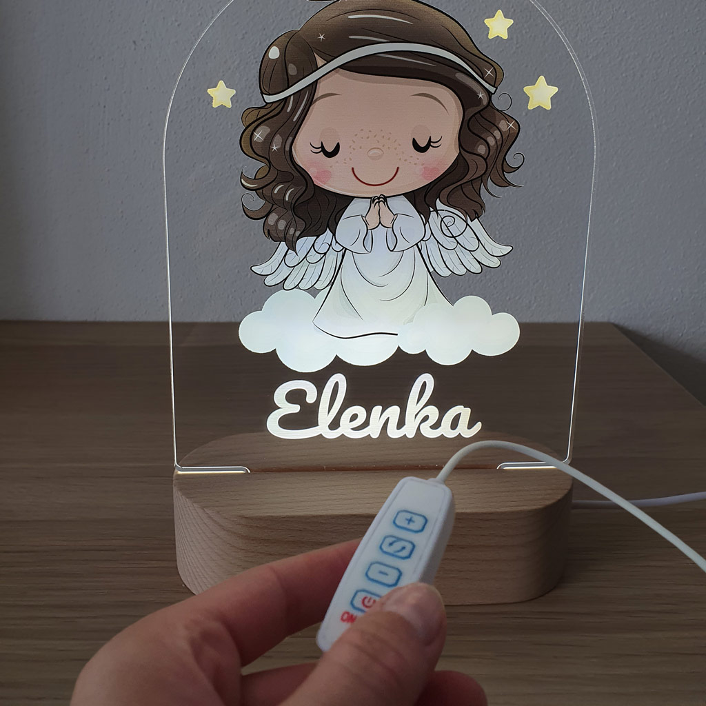 LED nočná lampa s vlastným menom dieťatka a motívom anjelky rozžiari nielen detskú izbičku, ale aj očká detí. Je to tiež ideálny darček k narodeniu dieťatka, na krstiny, narodeniny, či meniny.