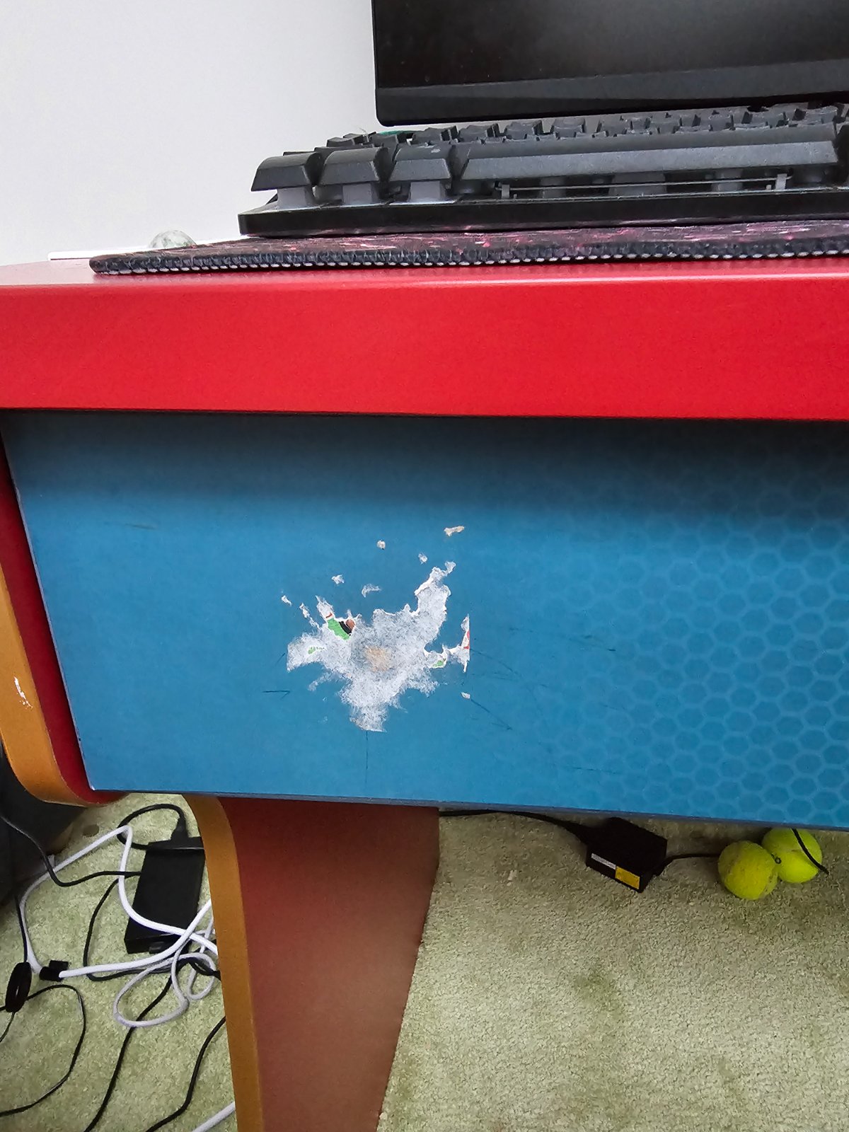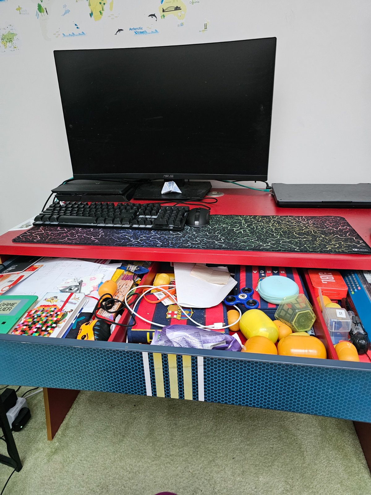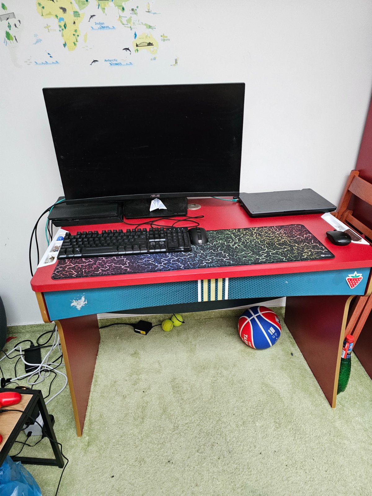 Používaný chlapčenský písací stól Cilek zo série Futbal. Výška 75,3cm, sirka 109,4cm, hlbka 66cm.