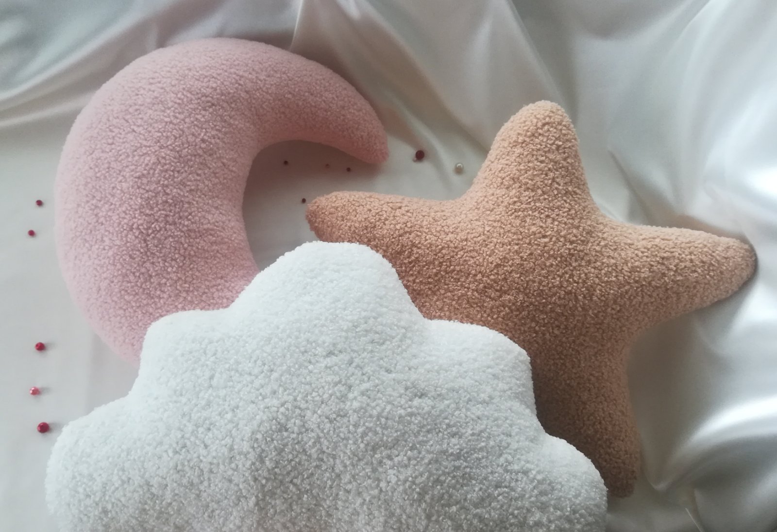 Taktiež z týchto látok šijem momentálne vankúšiky v tvare mesiaca a obláčika
