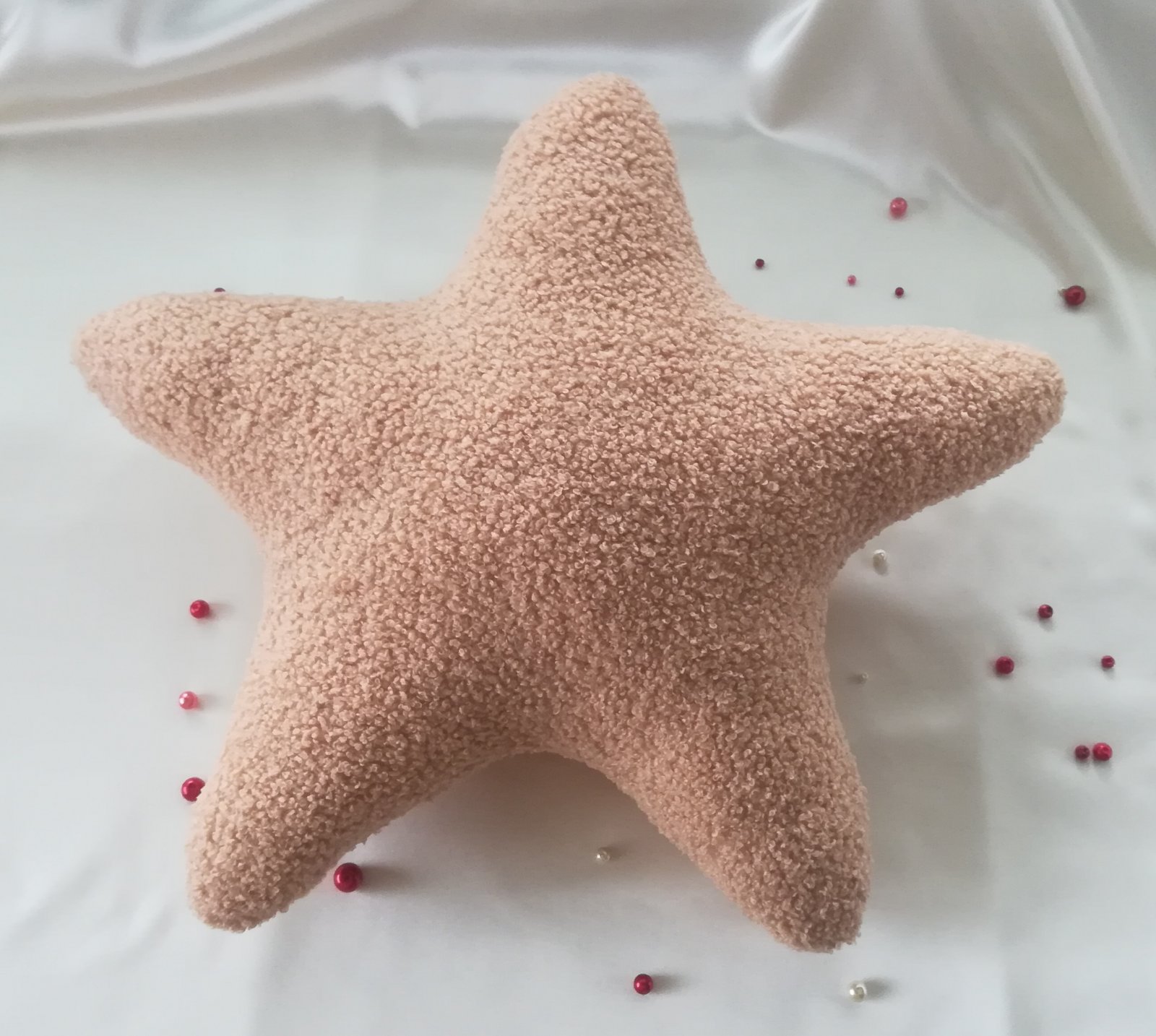Nový, handmade vankúšik z mojej dielničky v nádhernej béžovej farbe v tvare hviezdy, konce naschvál zaoblené aby si ani bábätká neublížili